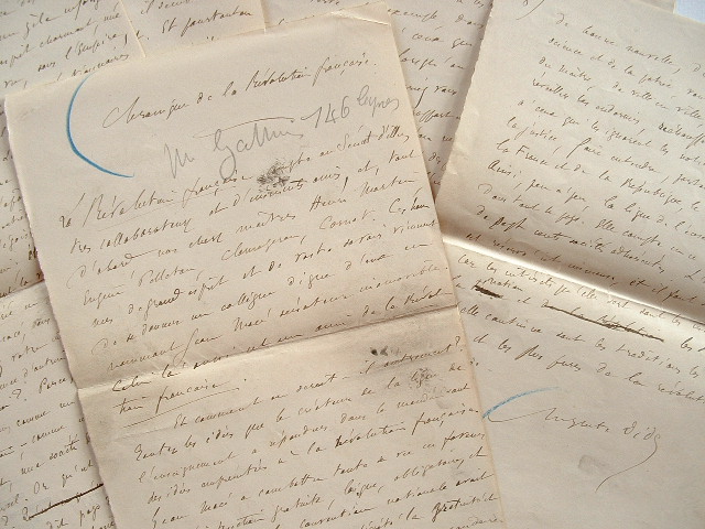 Auguste Dide (Vézenobres, 1839/1918)Manuscrit d'un article d'Auguste Dide intitulé : "Chronique de la Révolution française", vraisemblablement destiné à être imprimé dans la Revue de la Révolution française. Il y fait l'éloge de Jean Macé, l'un des collaborateurs de la revue, qui vient d'être élu sénateur inamovible (3 décembre 1883). «Toutes les idées que le créateur de la Ligue de l'enseignement a répandues dans le monde sont des idées empruntées à la Révolution française. Jean Macé a combattu toute sa vie en faveur de l'instruction gratuite, laïque, obligatoire, et l'on sait que la Convention nationale avait séparé l'église de l'école, décrété la gratuité et l'obligation de l'enseignement, même secondaire. Le mérite de Macé n'est pas d'avoir inventé des idées (et qui peut se vanter d'un tel mérite ?), c'est d'avoir mis au service des conceptions de la Révolution française, un zèle infatigable, une abnégation d'apôtre, un esprit charmant, une foi indomptable [...]».