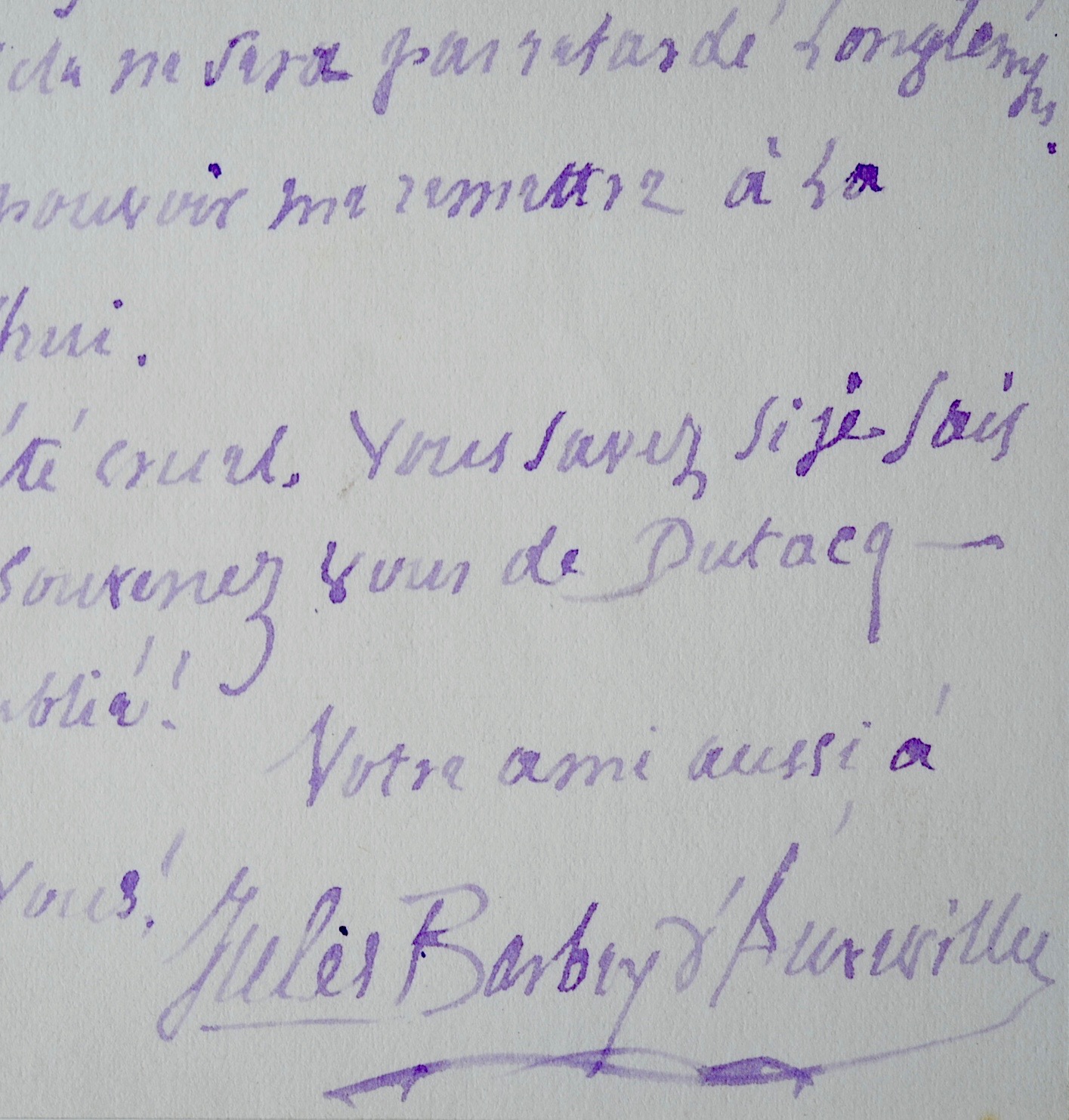 Belle lettre de Barbey D’Aurevilly rédigée après le décès de son ami, le critique et historien d’art Théophile Silvestre, survenu le 20 juin 1876 :