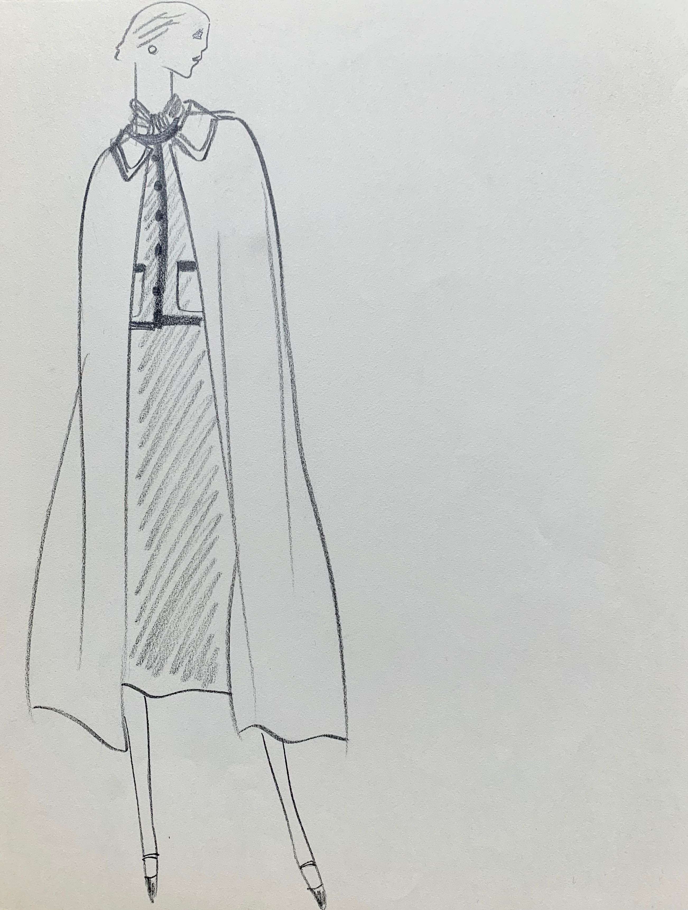 Dessin original d'Yves Saint-Laurent, à la mine de plomb.