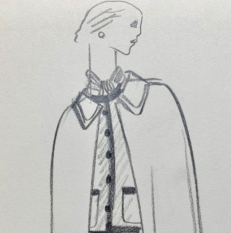 Beau dessin d’Yves Saint-Laurent : un mannequin en tailleur