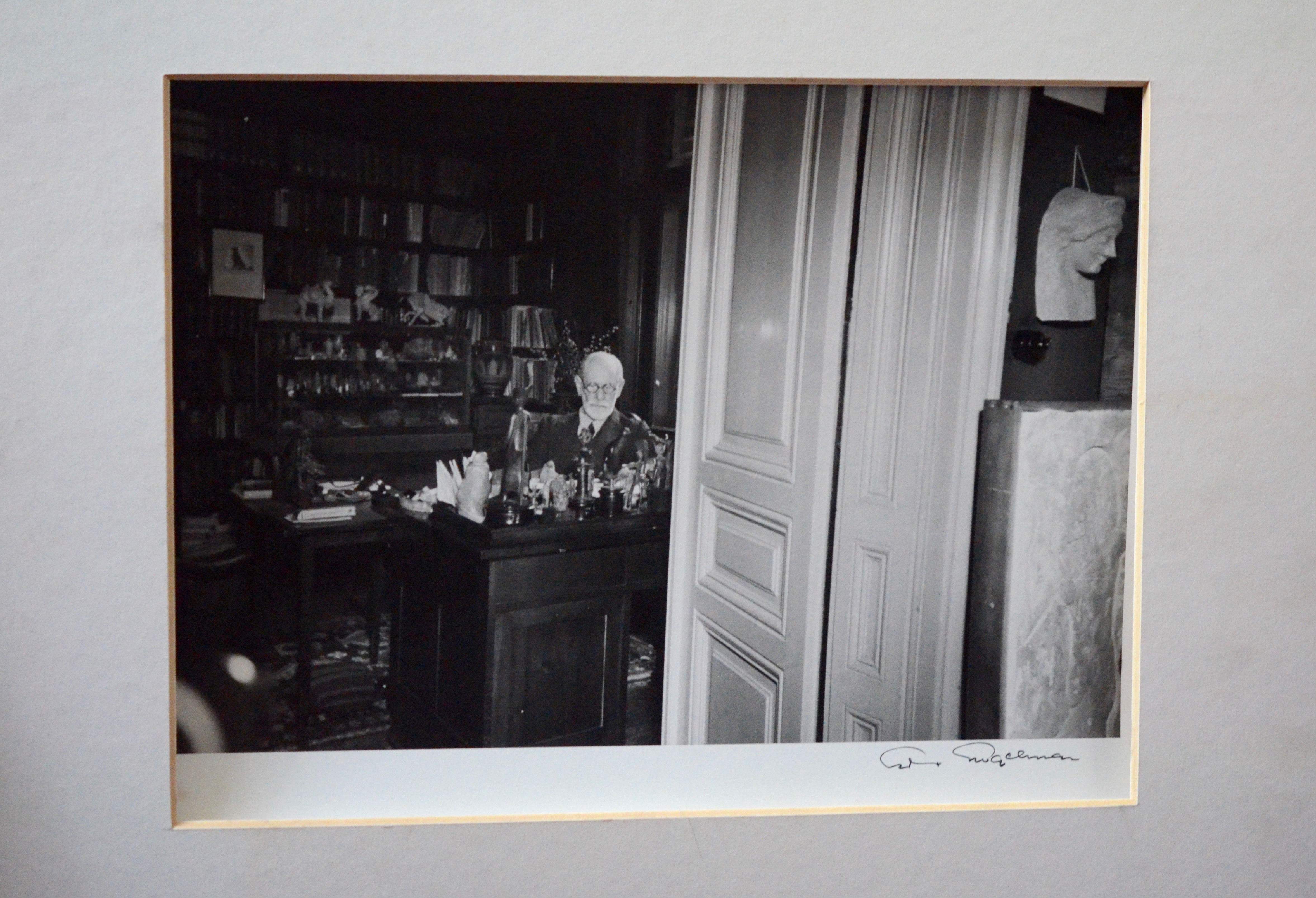 Beau cliché (retirage) signé dans la marge blanche par le photographe Edmund Engelman. Le cliché original datait de 1938 et illustrait l'ouvrage de ce dernier La Maison de Freud, Berggasse 19 Vienne.