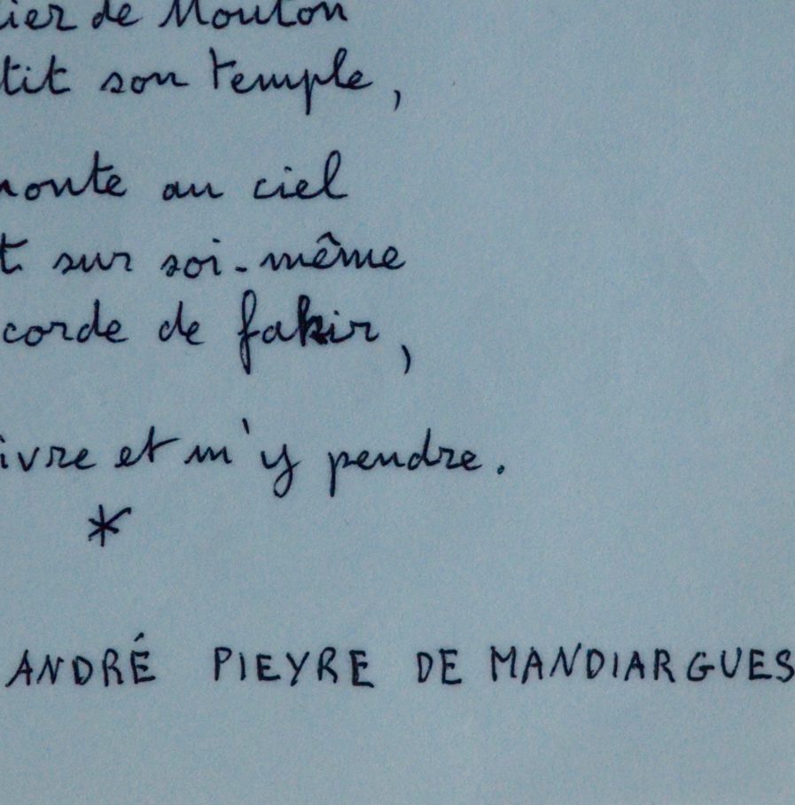 Beau manuscrit d’André Pieyre de Mandiargues, composé de 14 poèmes.