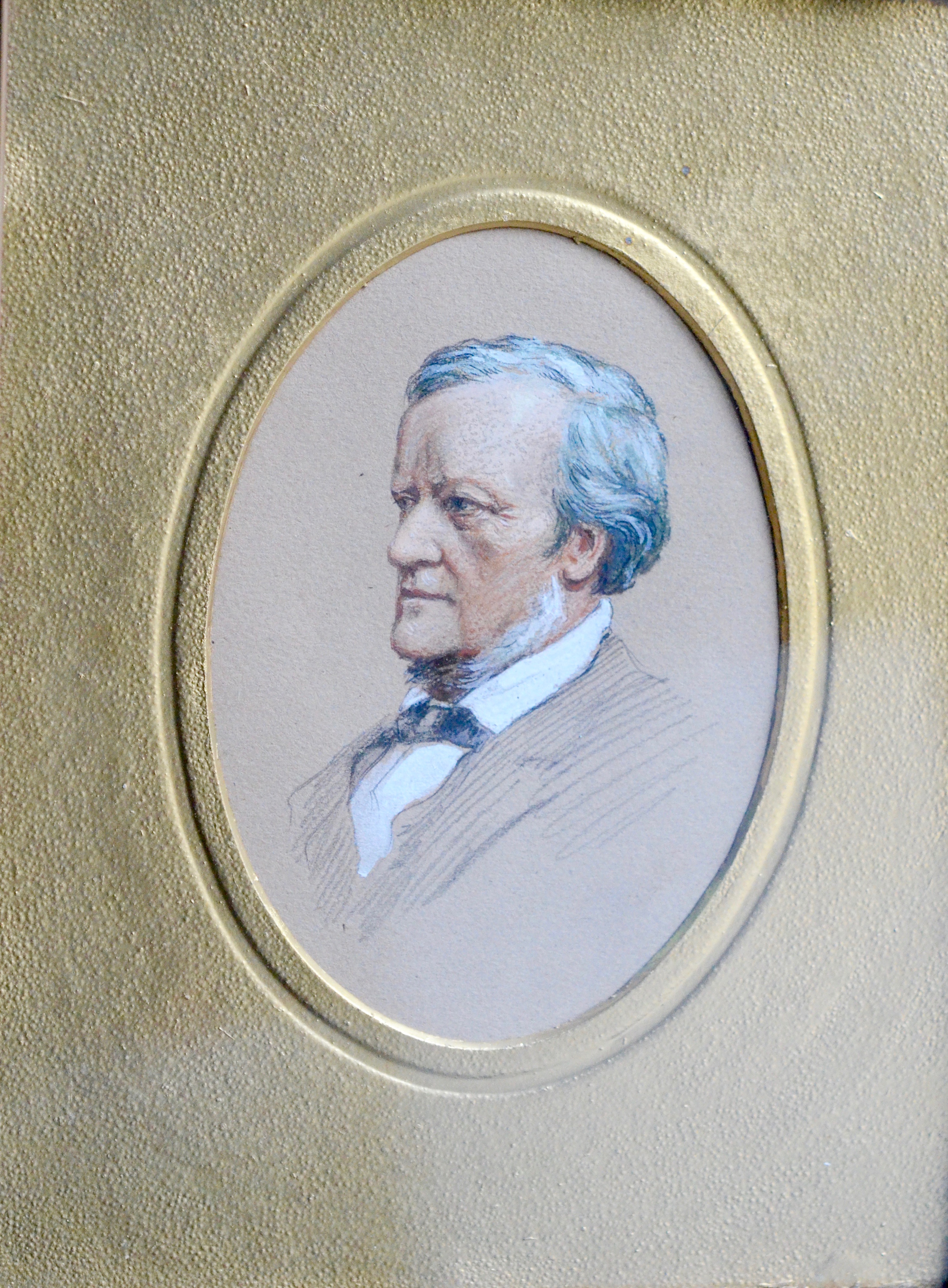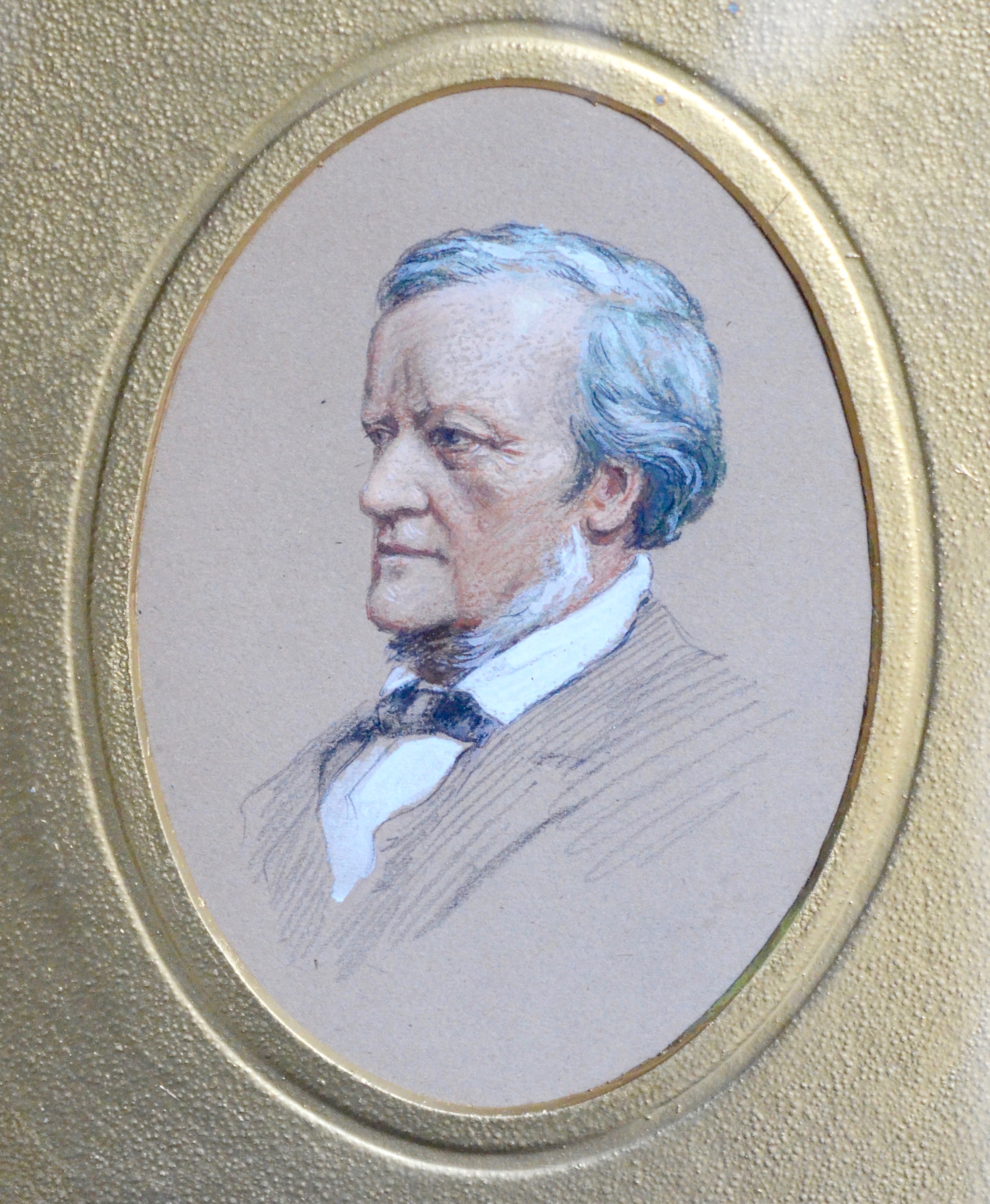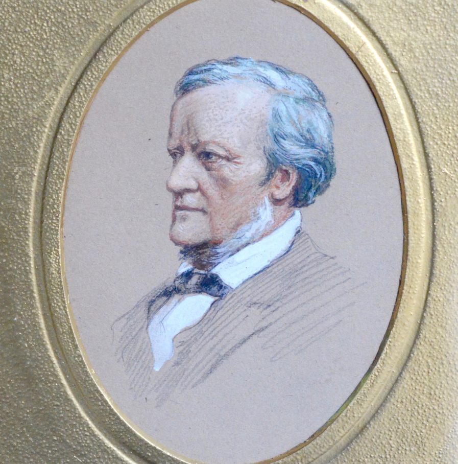 Très beau portait original de Richard Wagner à la mine de plomb et à l'aquarelle avec rehauts de pastels.