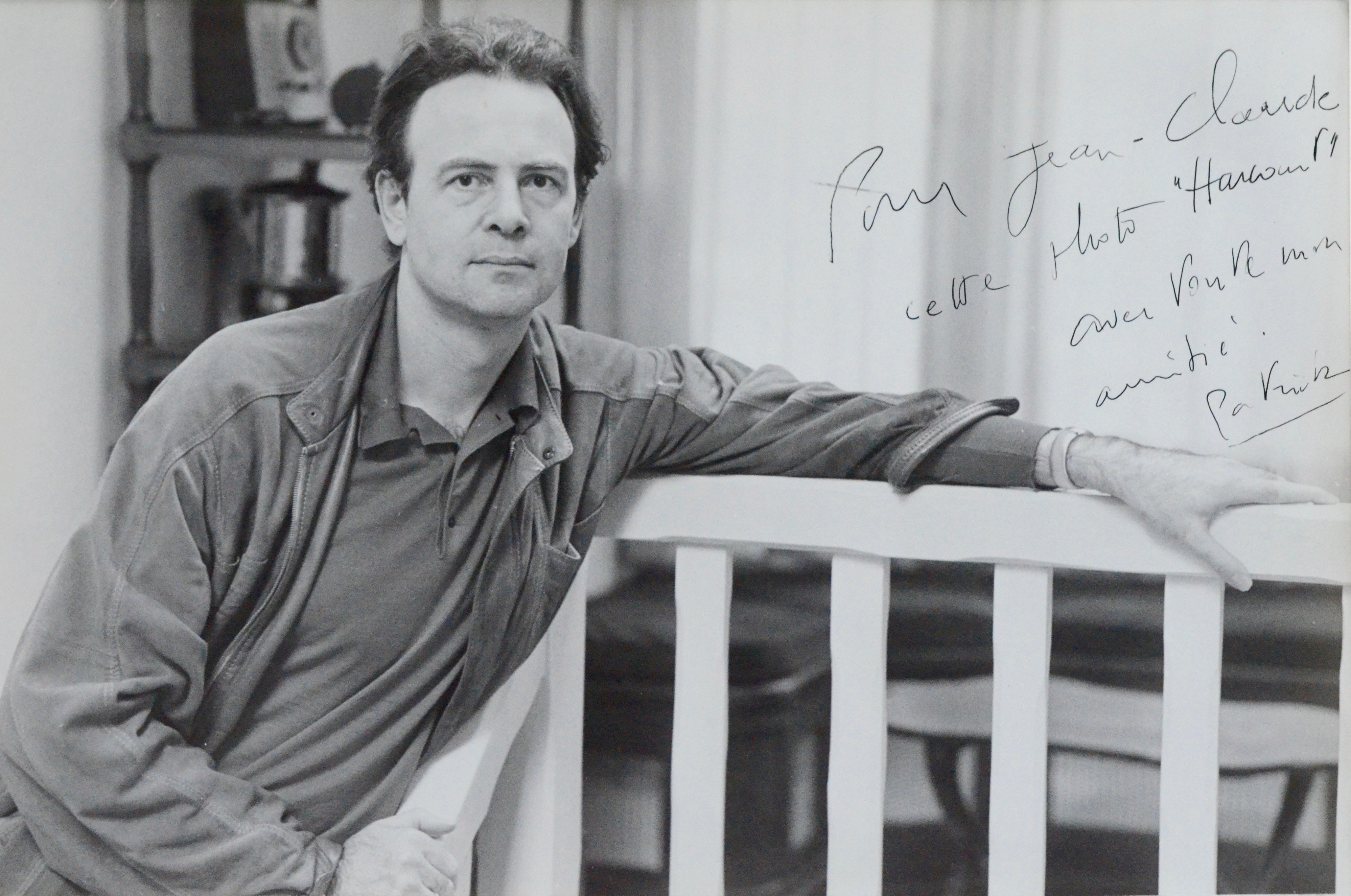 "Pour Jean-Claude cette photo "Harcourt" avec toute mon amitié. Patrick". Jean-Claude Lamy (1941-) est un journaliste, écrivain et éditeur français.