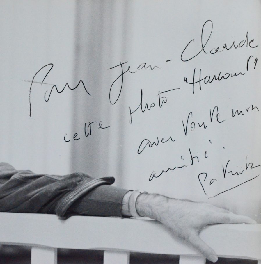 "Pour Jean-Claude cette photo "Harcourt" avec toute mon amitié. Patrick". Jean-Claude Lamy (1941-) est un journaliste, écrivain et éditeur français.
