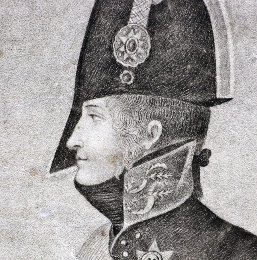 Beau portrait du tsar Alexandre 1er de Russie, dessin d’époque à la mine de plomb.
