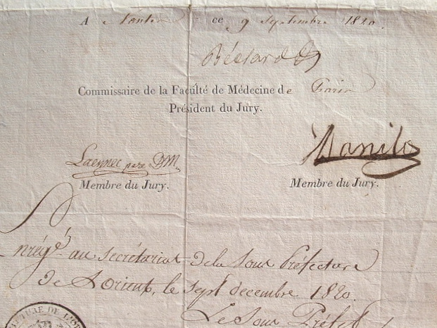 Béclard et G. F. Laënnec délivrent un certificat de sage-femme.