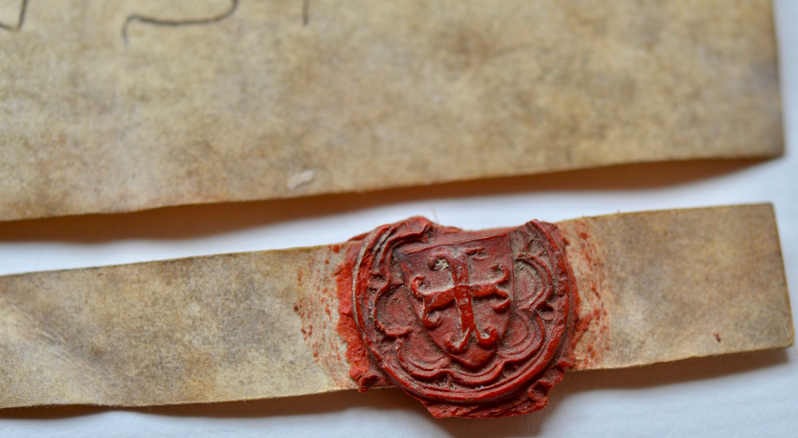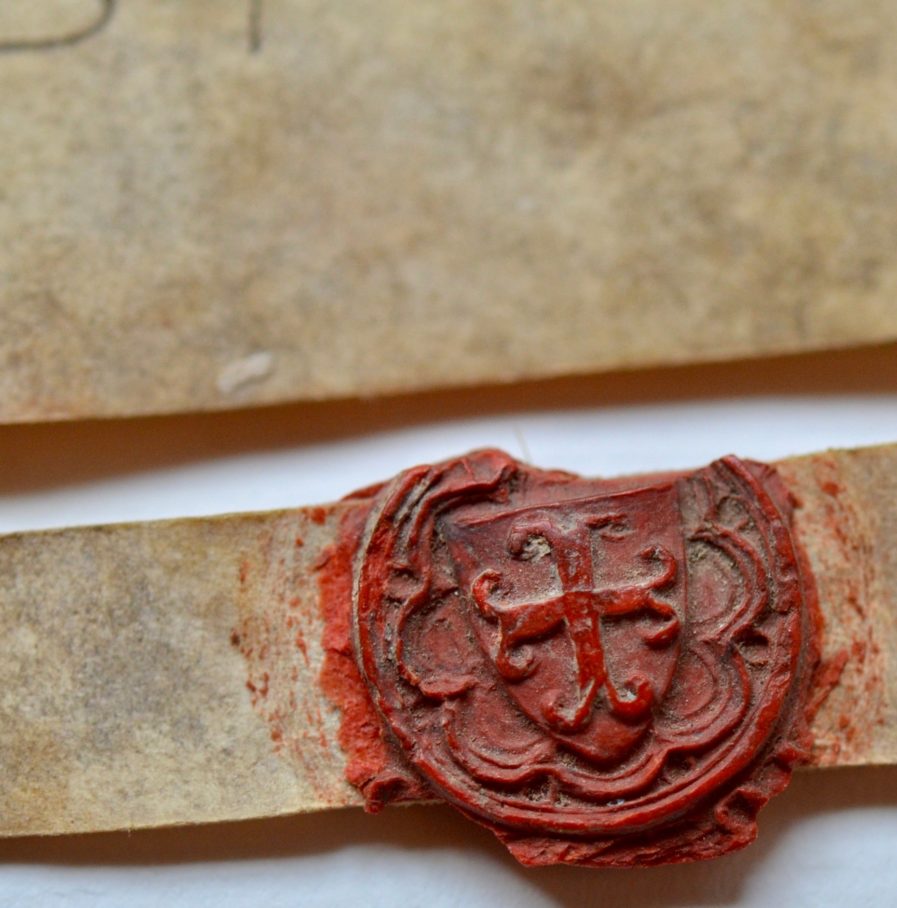 Scellée par un sceau en cire rouge armorié, bien frappé et presque complet (16 mm de diamètre), sur simple queue.