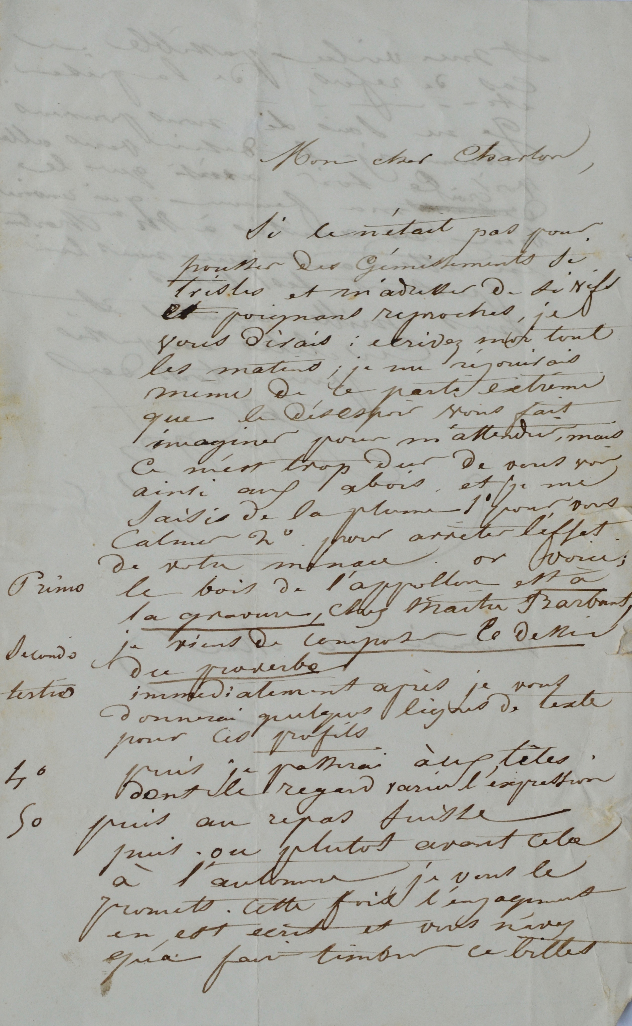 Belle lettre de Grandville adressée à son commanditaire Edouard Charton.