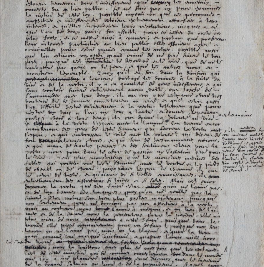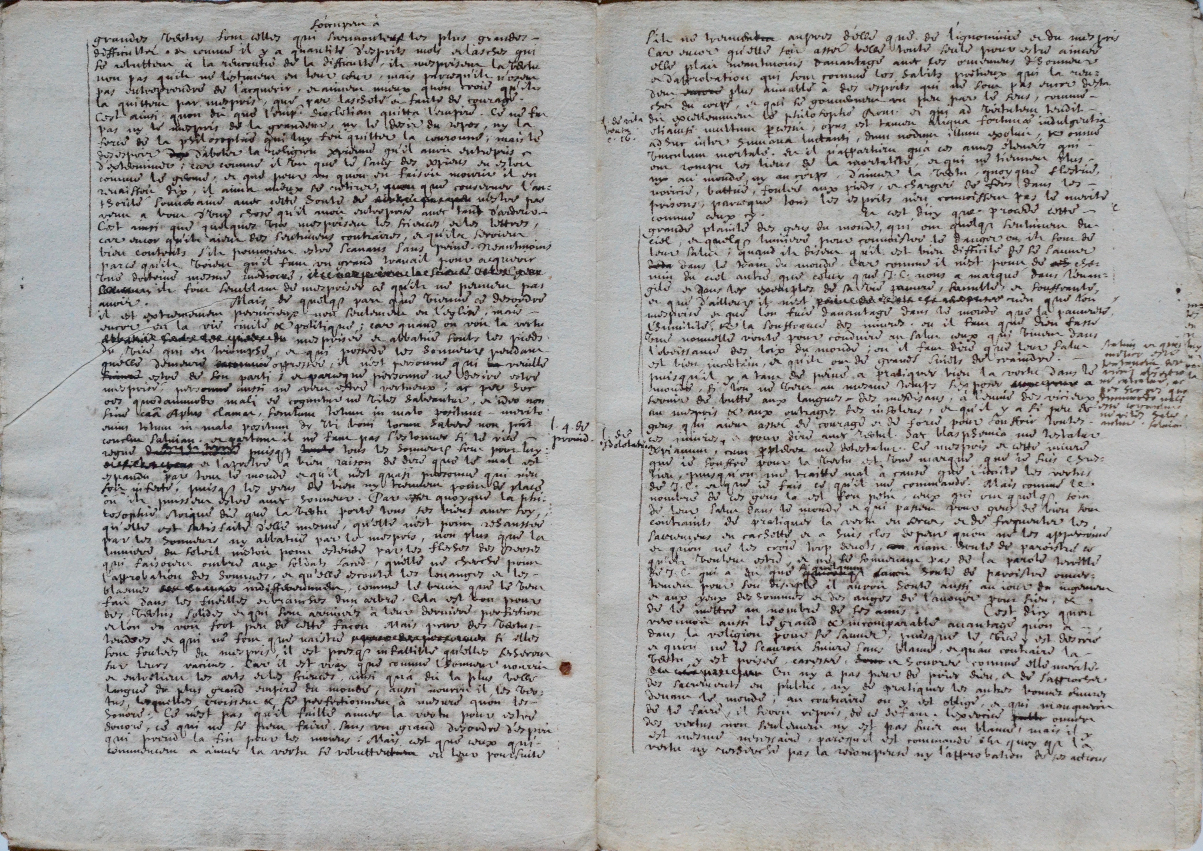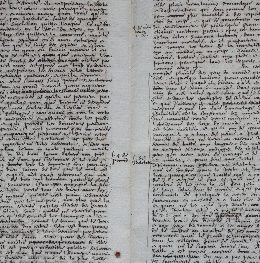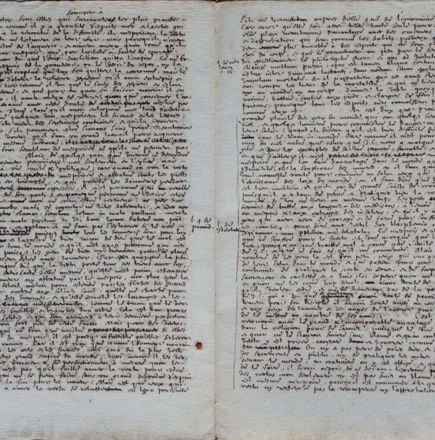 Manuscrit autographe d'une main non identifiée, intitulé Recumbe in novissimo loco Luc. 14 virtus contempla, rédigé d'une très fine et dense écriture avec corrections et additions en marge.