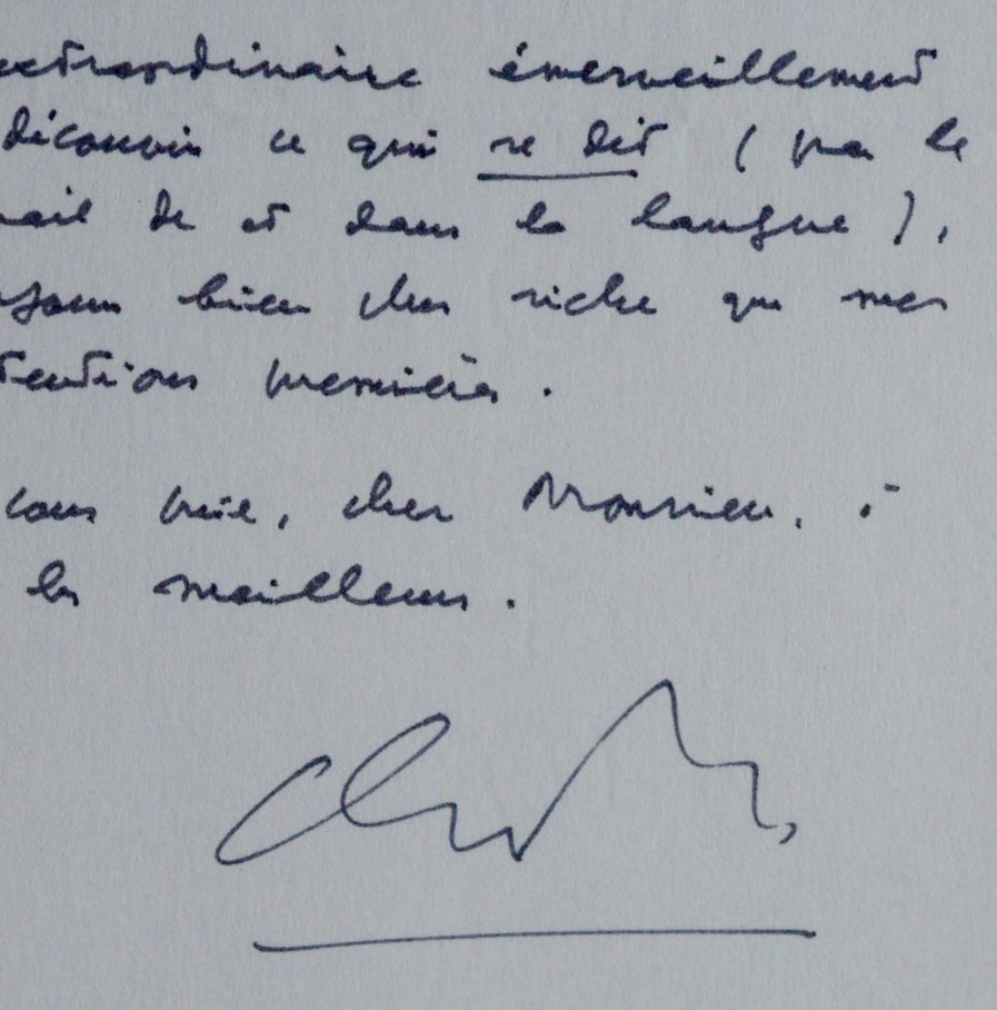Belle lettre de Claude Simon, consacrée à son parcours et à ses inspirations