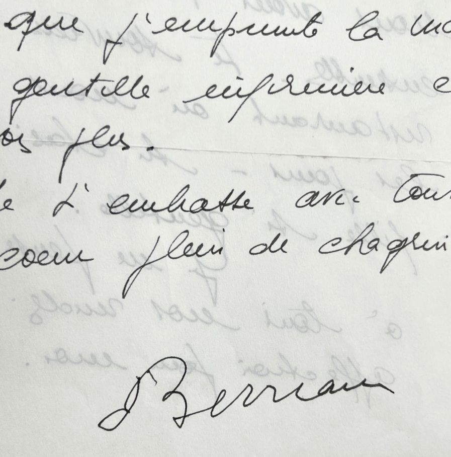 Belle lettre de condoléances de Simone Berriau adressée la veuve de Paul Meurisse