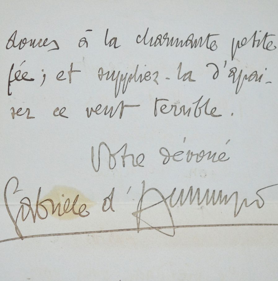 Belle lettre de Gabriele d’Annunzio avec sa devise « dare in brocca », peut-être adressée à Emma Debussy