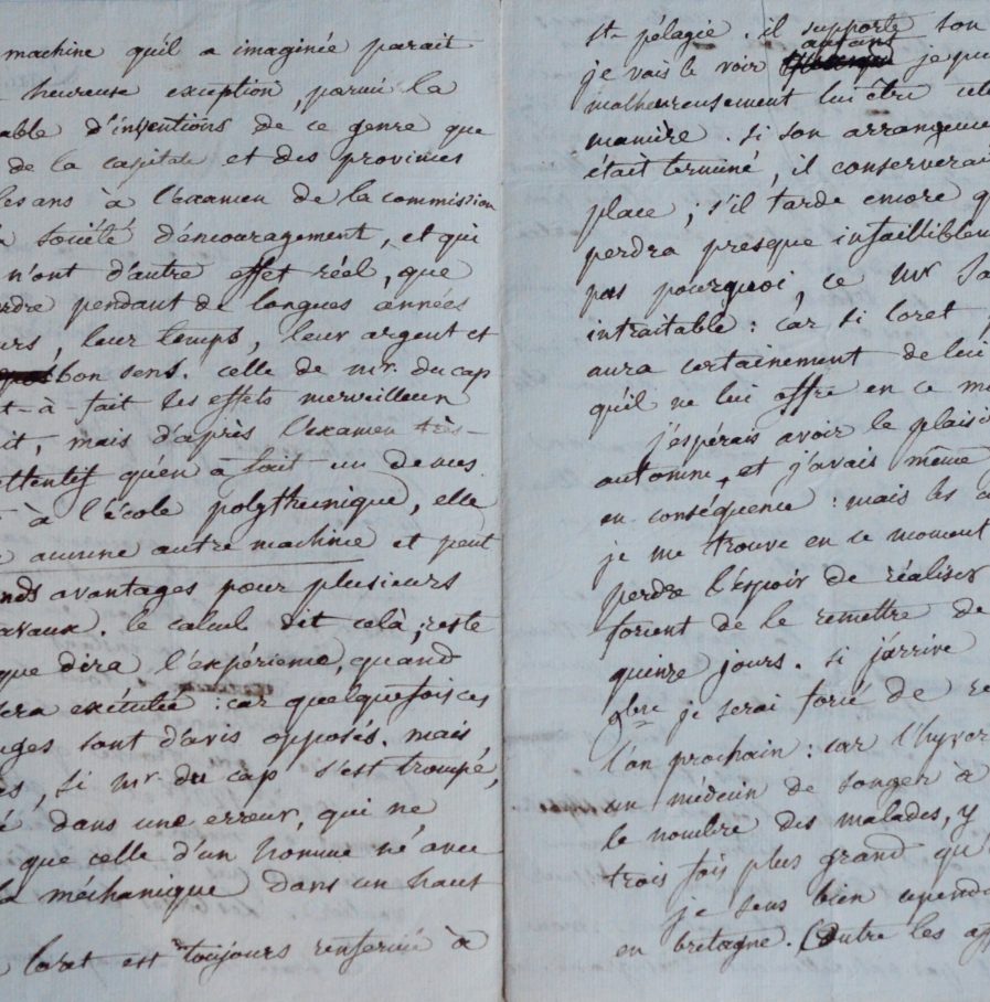 Il annonce ensuite avec satisfaction le probable succès de M. Du Cap, "un homme né avec le génie de la mécanique dans un haut degré" : "Ce brave Mr. Du cap touche, je crois au dénouement de son affaire. La machine qu'il a imaginée parait devoir faire une heureuse exception, parmi la quantité innombrable d'inventions de ce genre que les songes creux de la capitale et des provinces apportent tous les ans à l'examen de la commission des arts et de la société d'encouragement, et qui presque toutes n'ont d'autre effet réel, que d'avoir fait perdre pendant de longues années à leurs auteurs, leur temps, leur argent et souvent leur bon sens. Celle de Mr Du Cap ne produira pas tout-à-fait les effets merveilleux qu'il en attendait, mais d'après l'examen très-long et très-attentif qu'en a fait un de mes amis ancien répétiteur à l'école polytechnique, elle ne ressemble à aucune autre machine et peut avoir de grands avantages pour plusieurs genres de travaux."