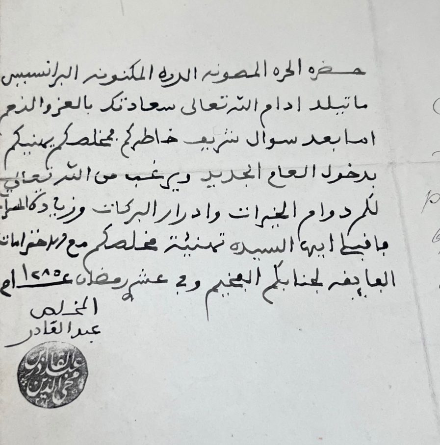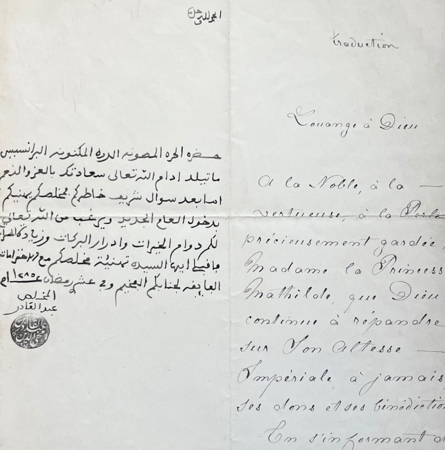 Belle lettre de l’Emir Abd-El-Kader à la Princesse Mathilde Bonaparte