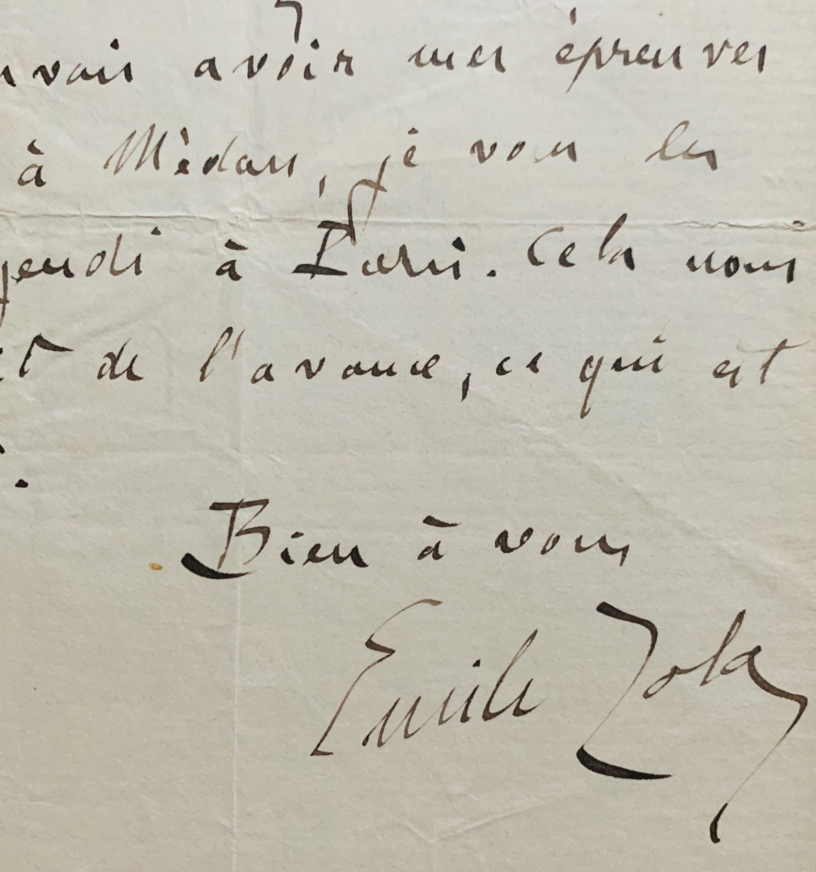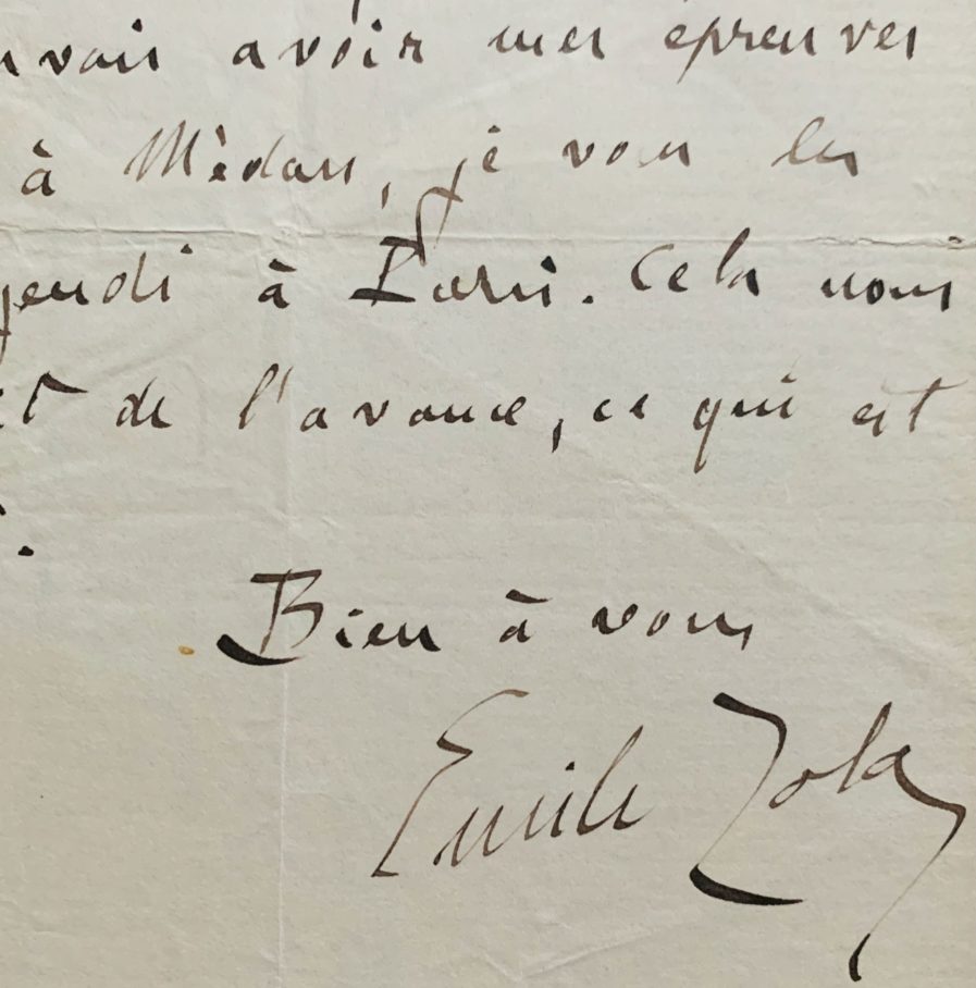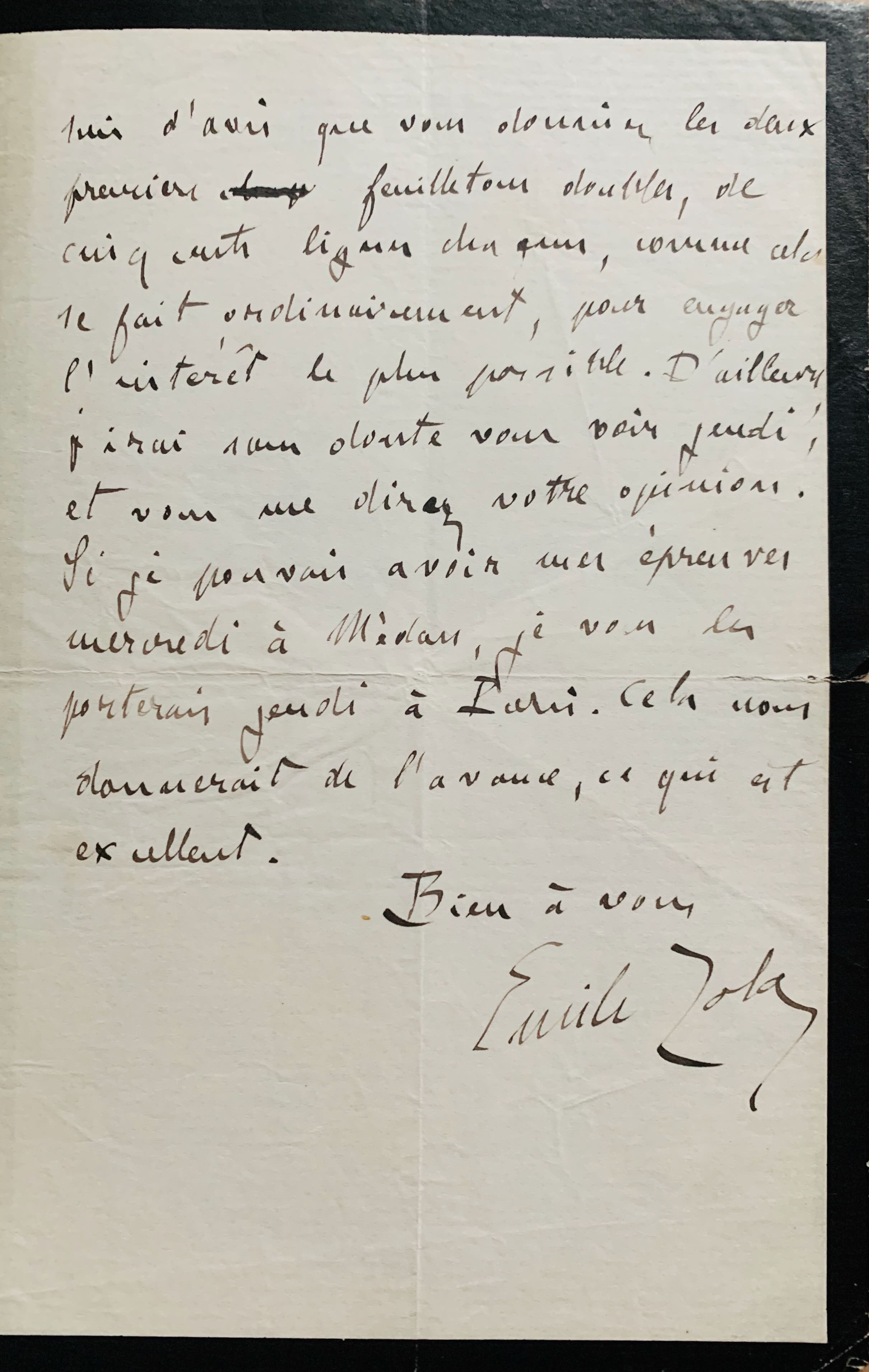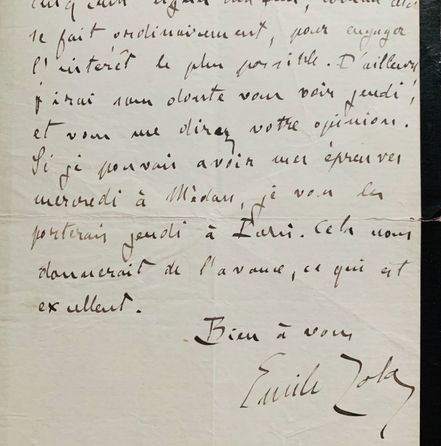 Belle lettre d’Émile Zola sur la publication de Pot-Bouille