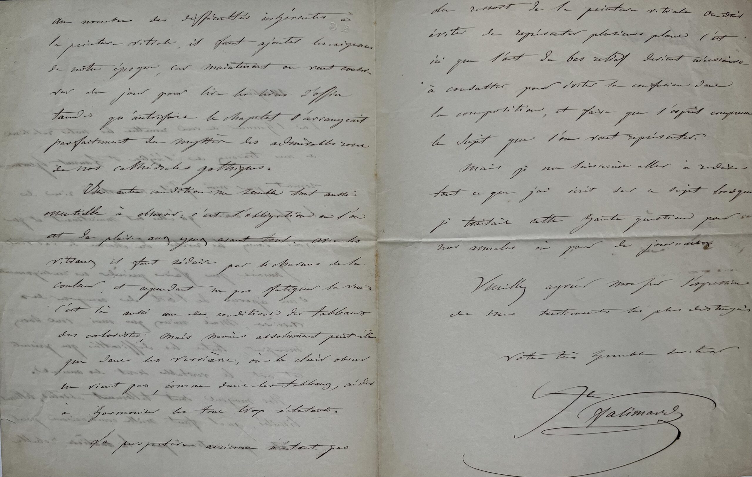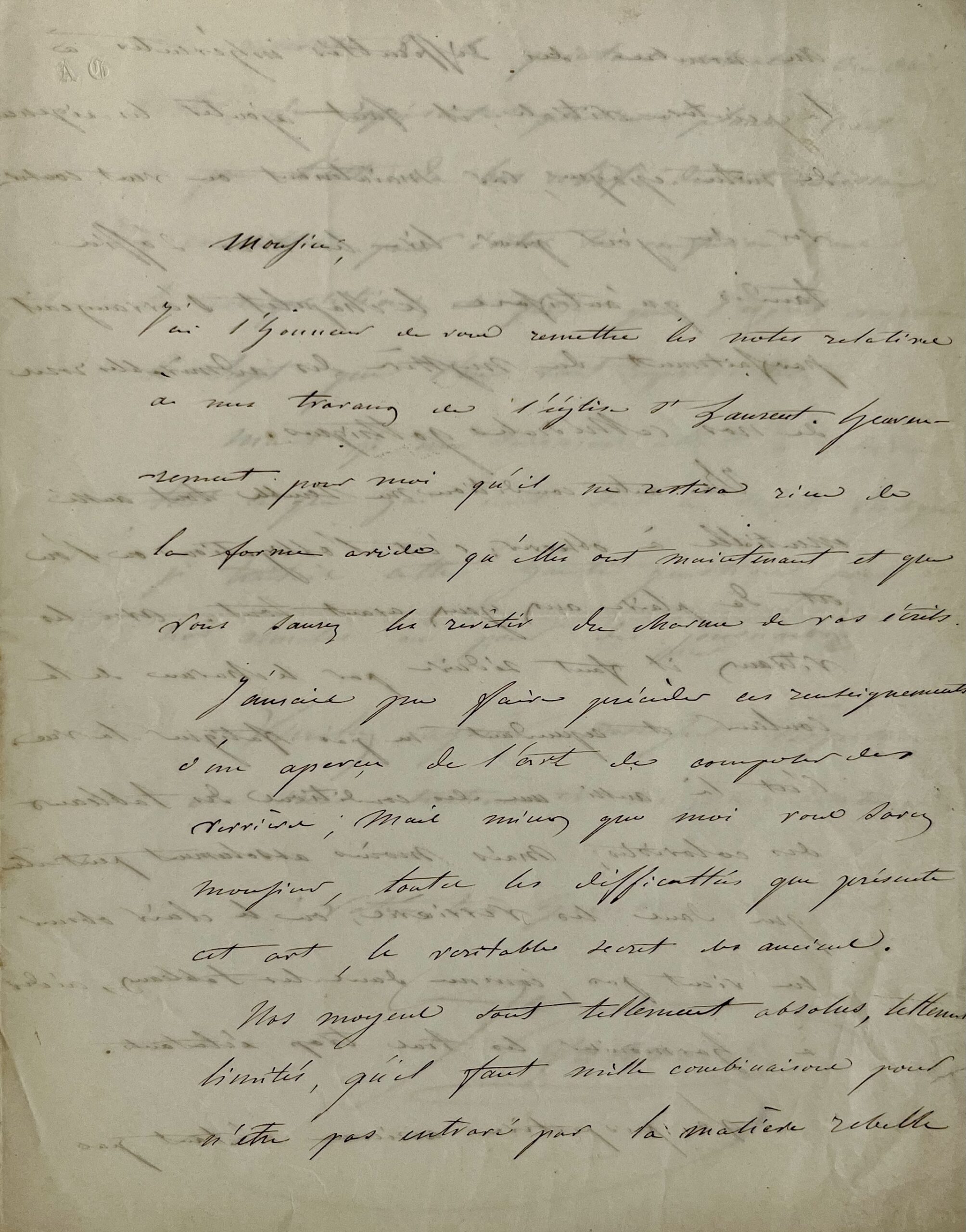 Belle lettre du peintre Auguste Galimard sur l’art du vitrail et son travail pour l’église Saint-Laurent