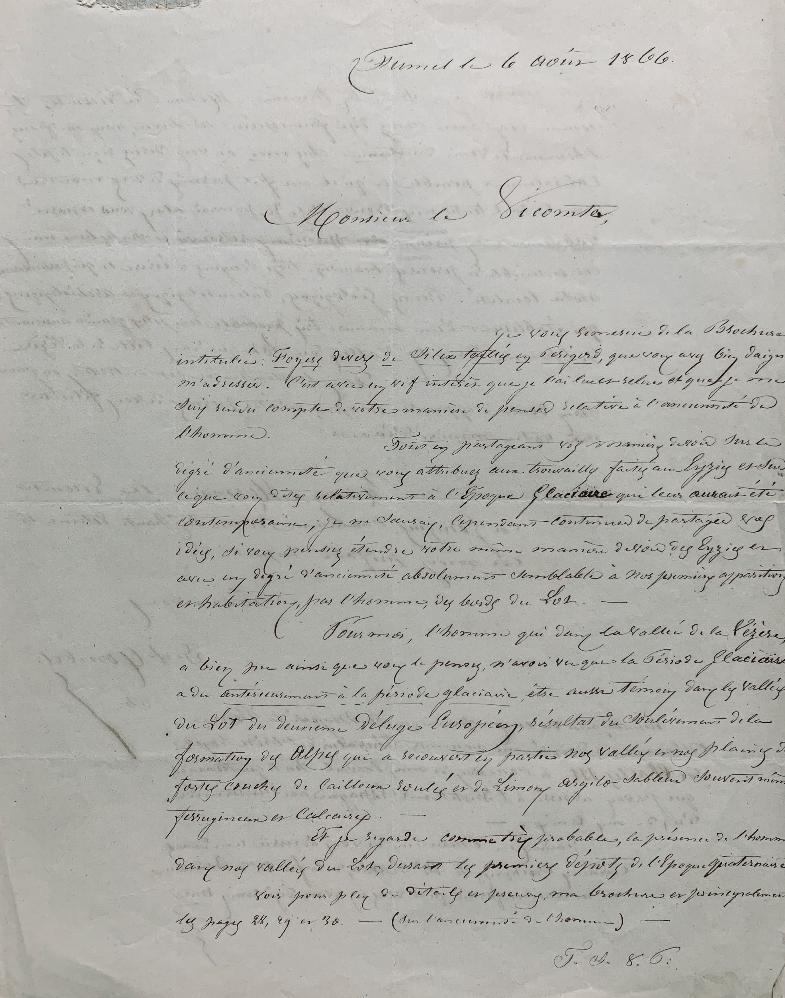 Belle lettre du préhistorien Ludomir Combes sur l’ancienneté de l’homme dans la vallée du Lot