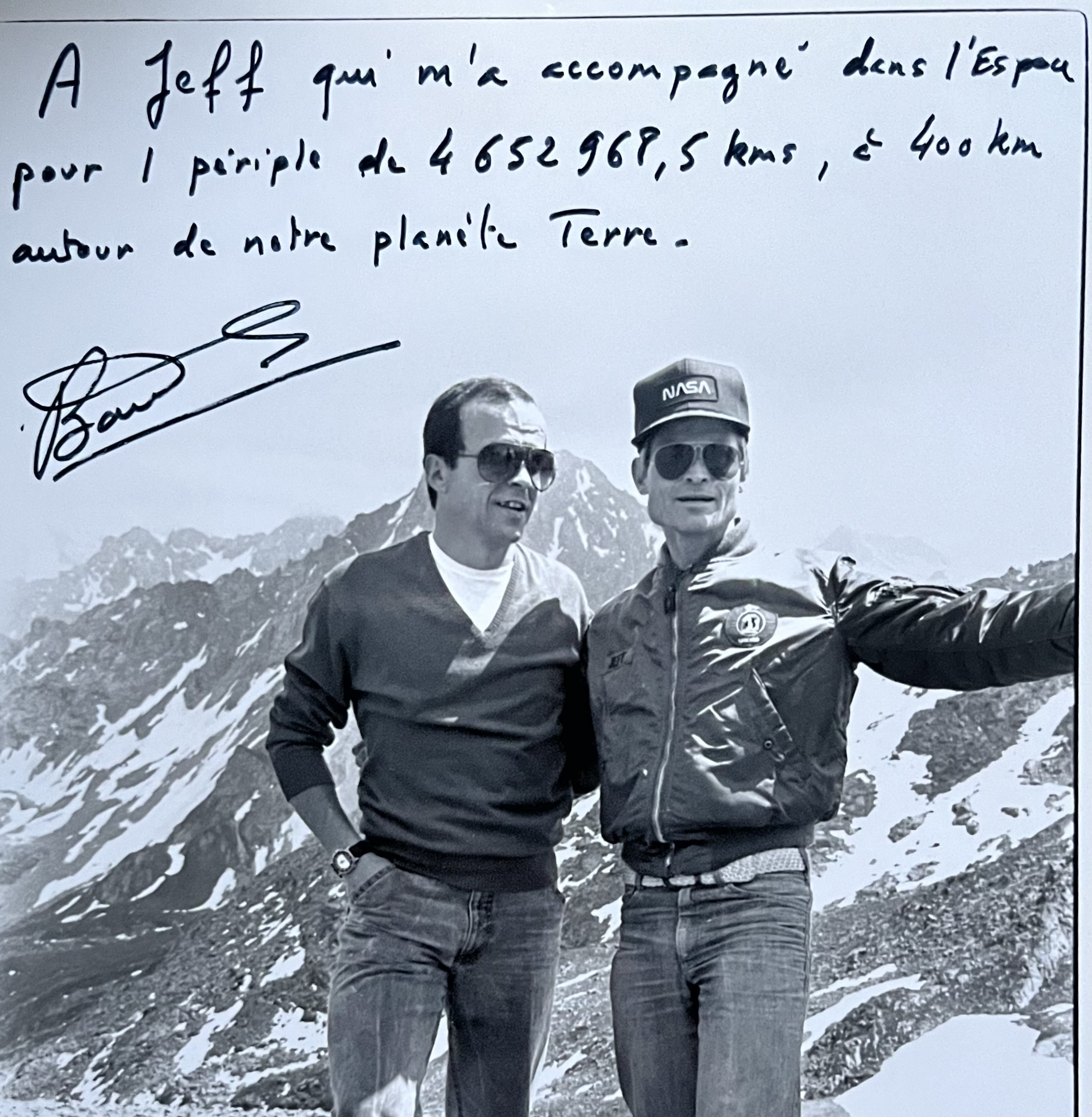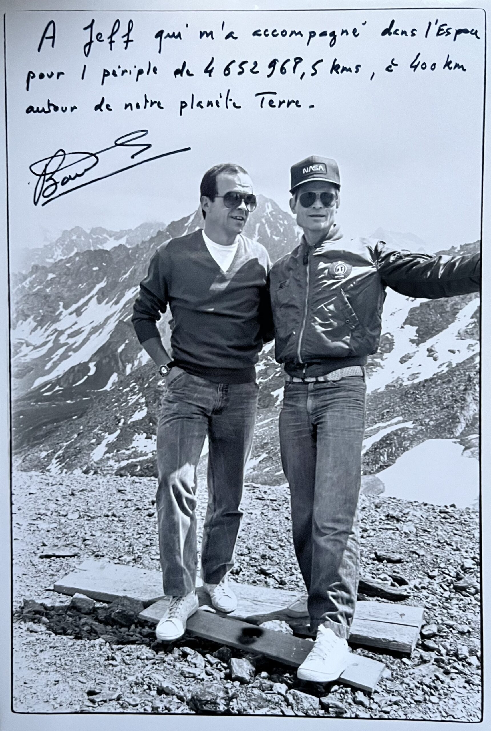 Bel envoi de Patrick Baudry "A Jeff qui m'a accompagné dans l'espace pour 1 périple de 4 652 968,5 kms, à 400 km autour de notre planète terre".