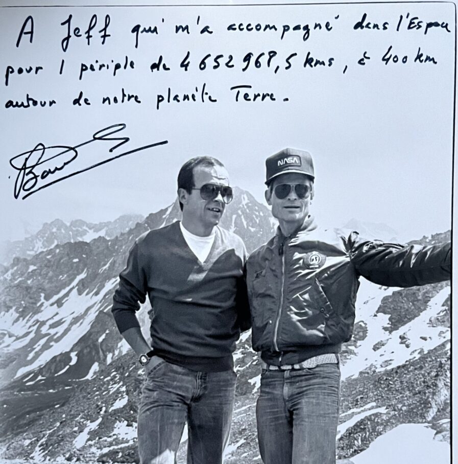 Belle photo dédicacée du spationaute Patrick Baudry à un ami qui l’accompagna dans l’espace