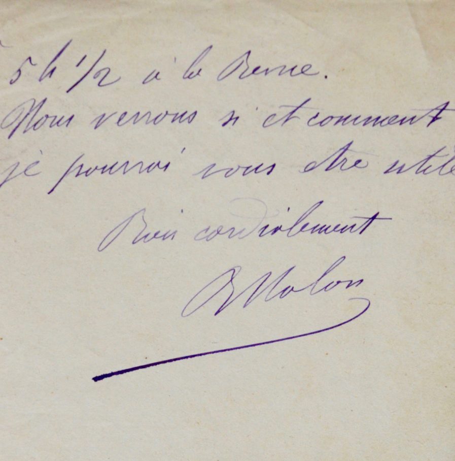 "Le but grandiose que vous nous proposez ne peut pas je crois être atteint par une simple association indépendante. Il y faudrait l'action collective et cela nous ramène au socialisme. Je ne refuse pas cependant d'en conférer avec vous et je serai à votre disposition samedi à 5 h 1/2 à la Revue. Nous verrons si et comment je pourrai vous être utile [...]".