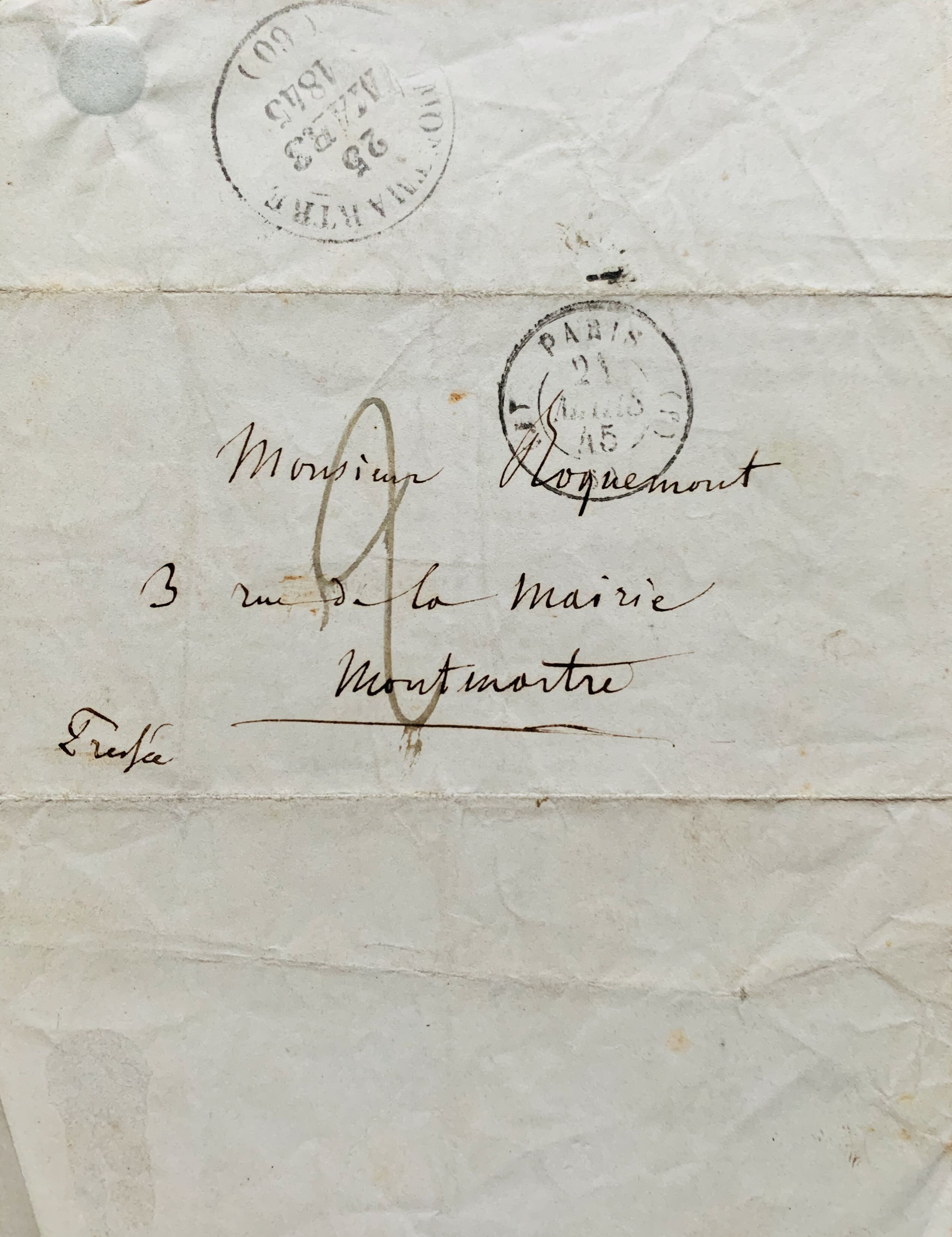 Adresse au dos avec marques postales.