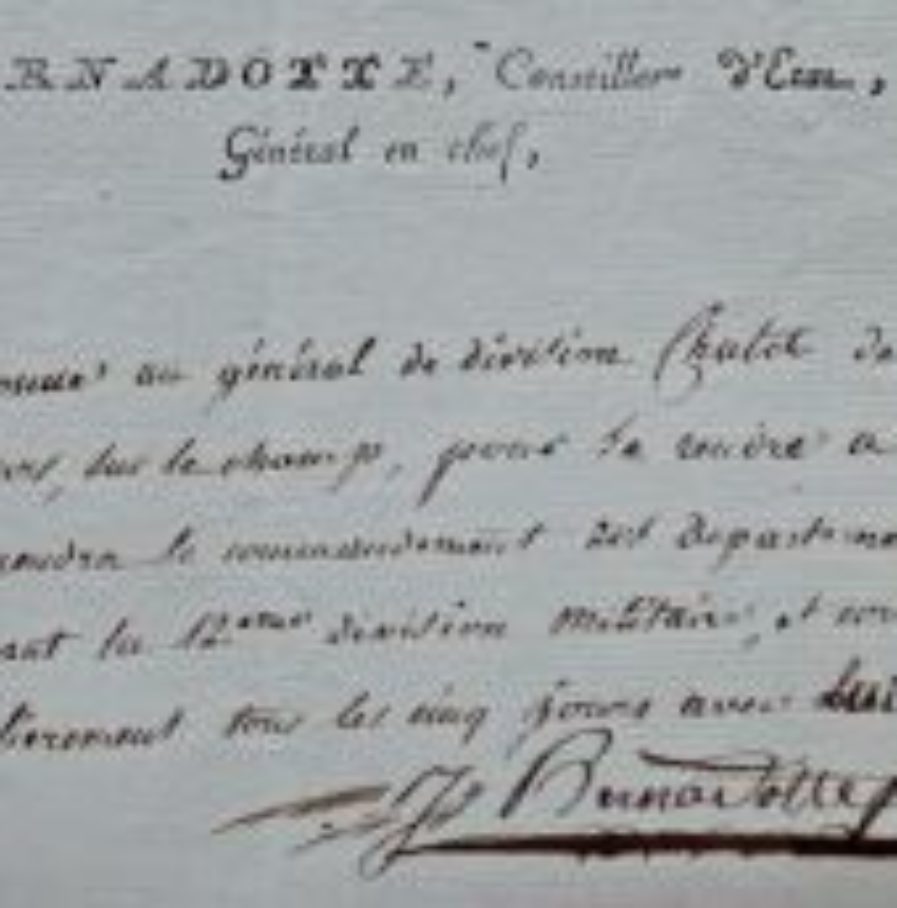 Bernadotte vient d'être nommé à la tête de l'Armée de l'Ouest et réorganise ses troupes. Par cette missive, il donne ordre au général Chabot «de partir de Tours, sur le champ, pour se rendre à Nantes» et de prendre «le commandement des départements formant la 12e division militaire». Il lui donne ordre également de correspondre tous les cinq jours avec lui.