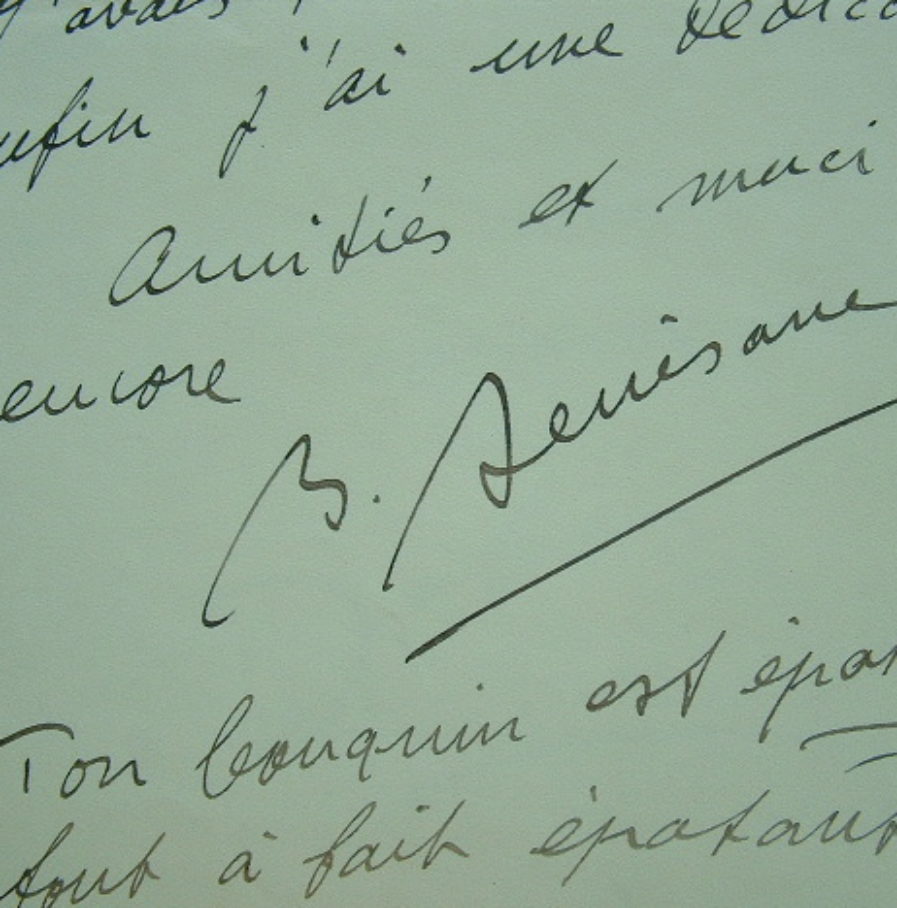 Correspondance du journaliste de l'Action Française Bernard Denisane, relative à la lecture de divers ouvrages de Mortane. «Merci pour ton beau bouquin. Moi aussi je voudrais bien te voir. Où ? Quand ? J'ai une collaboration pour toi qui t'intéressera, je crois. Je te joints l'A.F. dans laquelle j'ai passé un filet sur ton Mermoz [publié en 1937 chez Plon], qui est vraiment épatant [...]. Tu es un ange d'avoir pensé à moi. J'avais tous tes bouquins, enfin j'ai une dédicace ! Ton bouquin est épatant, tout à fait épatant [...]. Je ne t'ai pas encore remercié pour l'envoi de tes deux bouquins "jumelés". La raison : j'ai terminé cette nuit le dernier, celui de Lufberry et Marc Pourpre. Epatant, tu sais ! Il y a des tas d'anecdotes que j'ignorais. Ton bouquin des aérostiers, également passionnant. As-tu lu "aérostier, mon frère..." de je ne sais plus qui ? Je te le prêterai [...]».