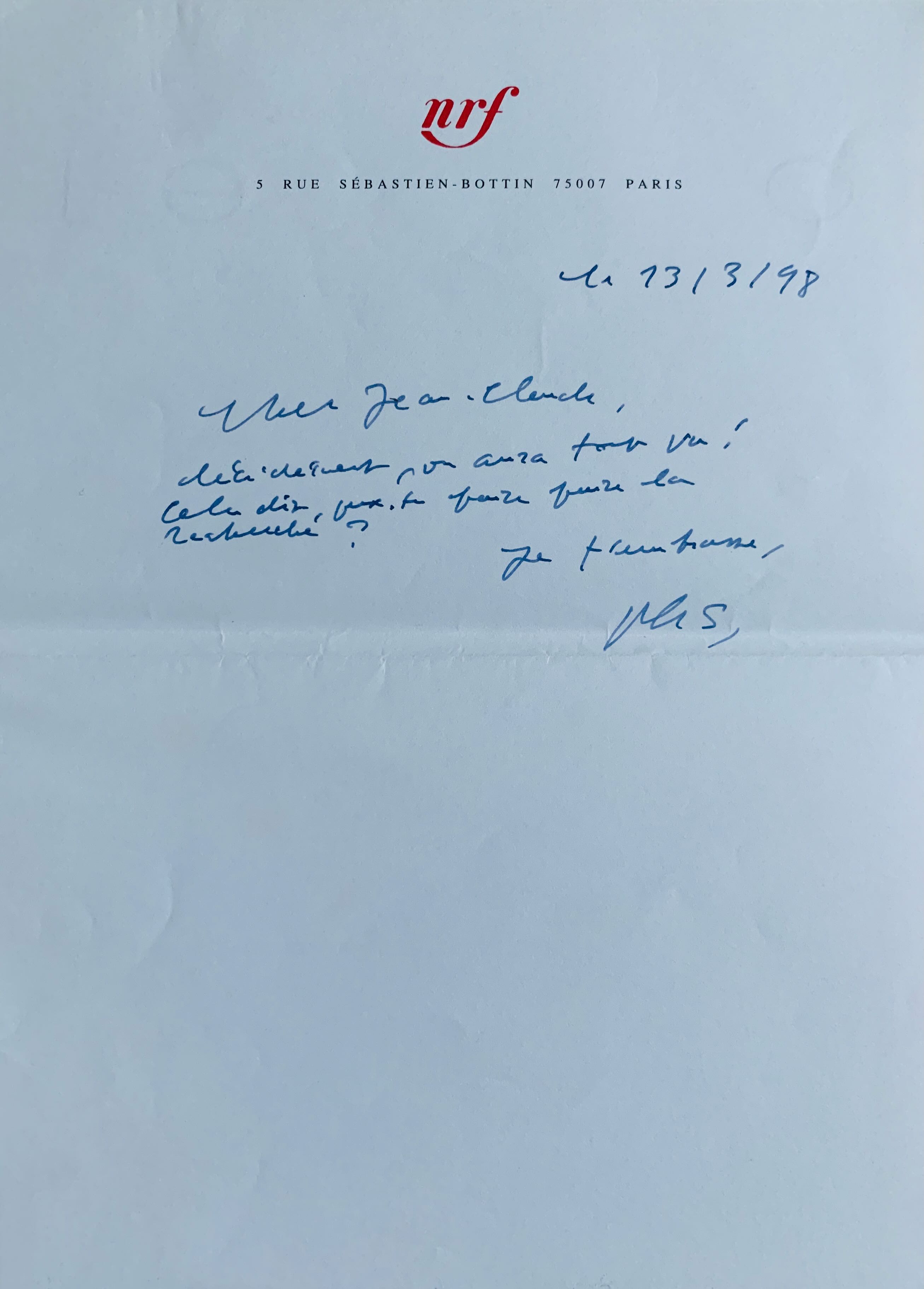"Décidément on aura tout vu! Cela dit, peux-tu faire faire la recherche? Je t'embrasse. Ph S"