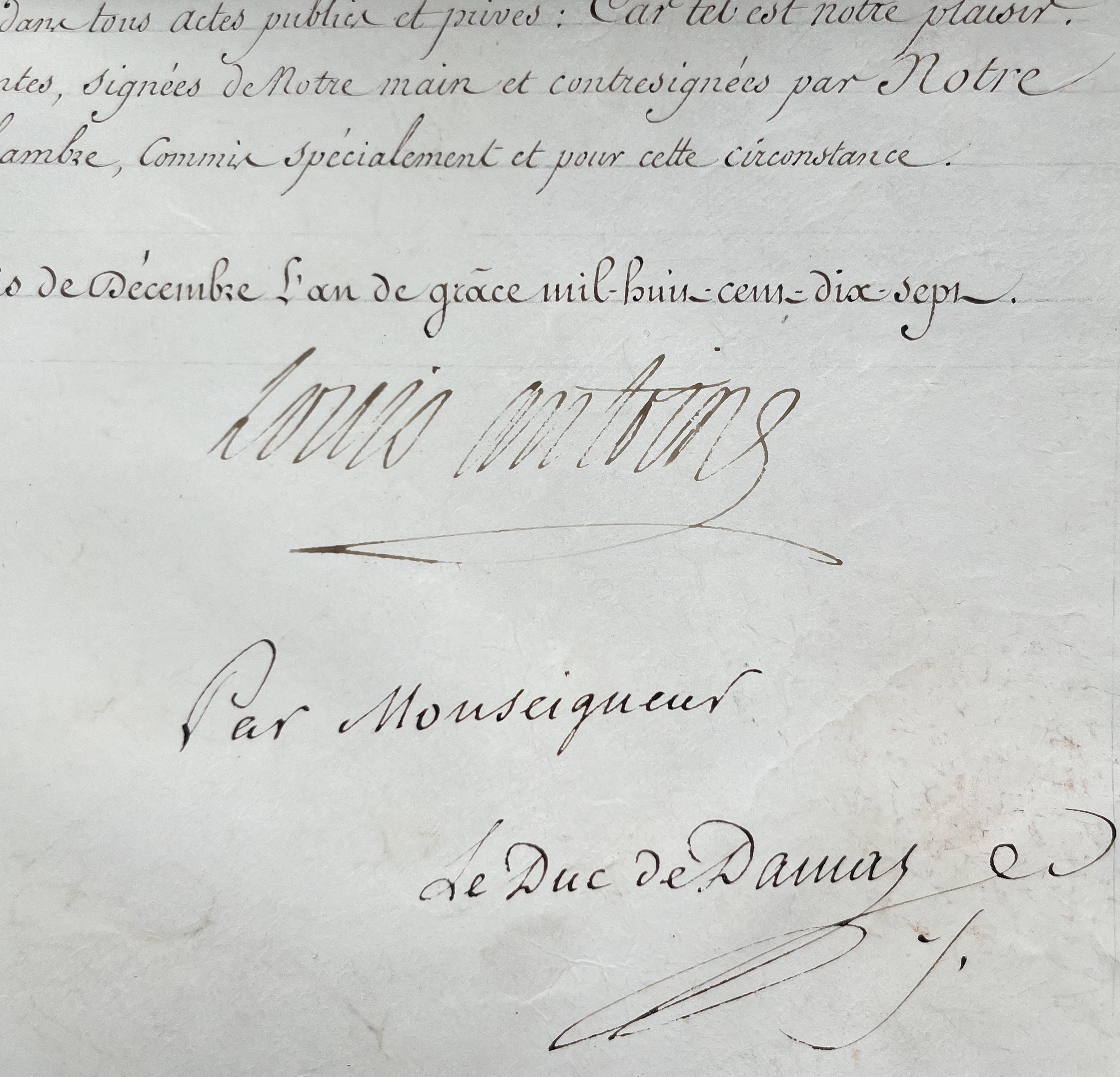 Brevet de secrétaire des commandements signée par Louis-Antoine d’Angoulême, en 1817