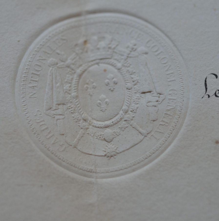En-tête aux armes de France. Sceau gaufré aux armes.