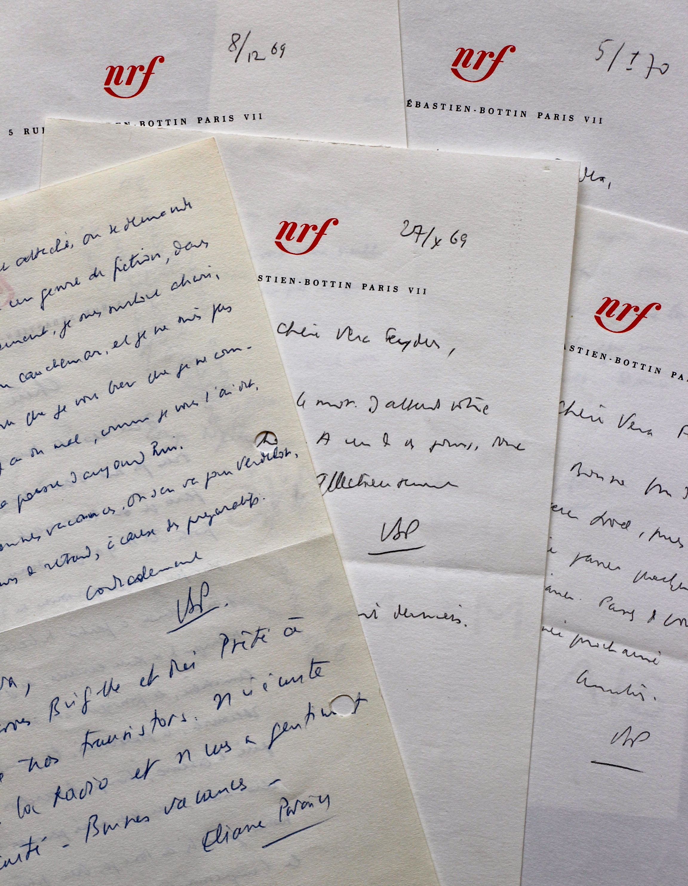 Correspondance amicale et littéraire avec Vera Feyder, qui animait à cette époque une émission radiophonique sur France Culture et qui l'invita à participer à son émission "L'environnement poétique". Sa première lettre (15 juillet 69) fait référence à l'une des pièces radiophoniques «Si vous vous perdez à Elfaciano... », dont il fait un compte-rendu quelque peu chaotique (et lacunaire), l'ayant écouté sur un transistor de fortune, avec un son parasité. "C'est court, on est attaché, on se demande ce qui arrive, mais c'est un genre de fiction dans lequel j'entre difficilement. Je suis surtout ahuri, j'ai l'impression d'un cauchemar, et je ne suis pas touché à fond, parce que je vois bien que je ne comprends pas tout. J'ai du mal, comme je vous l'ai dit, à me faire à la poésie d'aujourd'hui". Les autres lettres ont un caractère plus amical.