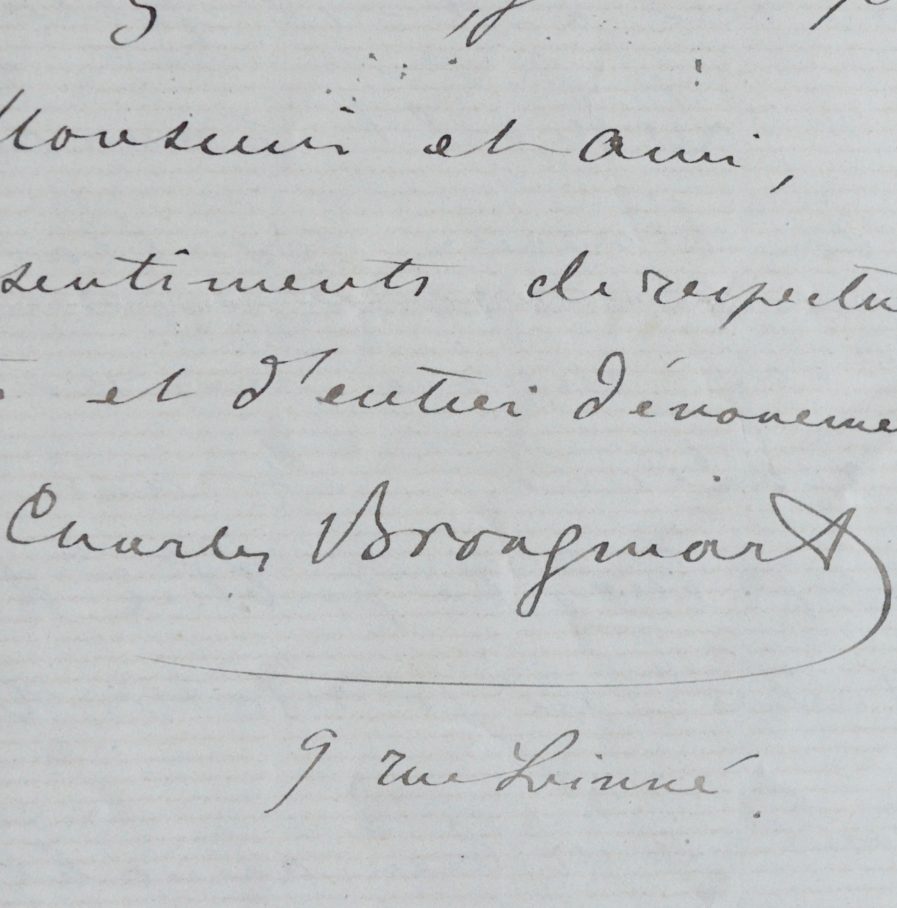 Charles Brongniart (Paris, 1859/1899)Lettre de remontrance de l'entomologiste Charles Brongniart, relative à son travail.