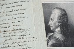 Rare brouillon d'une pièce en vers de Claude Joseph Dorat, mettant en scène Germon et Lafleur, probablement pour le Célibataire, comédie en cinq actes et en vers, jouée par les Comédiens français le 20 septembre 1775, et publiée en 1776. Une quarantaine de vers : «Je sais et ce projet franchement n'est pas bête / Votre air d'honnêteté lui fait tourner la tête [...]».