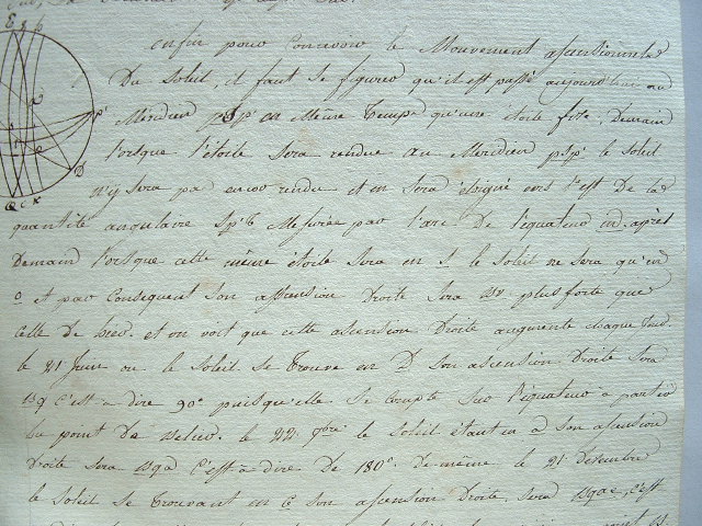 Manuscrit vraisemblablement tenu par un élève officier, signé Granet et daté: «fini le 23 juin 1812». Nombreux croquis géométriques dans le texte. Il s'agit d'un cours enseignant les principes fondamentaux de navigation. Il est divisé en trois parties : «Première section de navigation dans laquelle on donne les connaissances nécessaires pour la construction et l'usage des cartes, et où l'on enseigne les méthodes pour résoudre les questions de navigation. Seconde section de navigation dans laquelle on donne les connaissances d'astronomie nécessaires aux navigateurs et Troisième section de navigation dans laquelle on enseigne l'usage des connaissances précédentes dans la navigation».