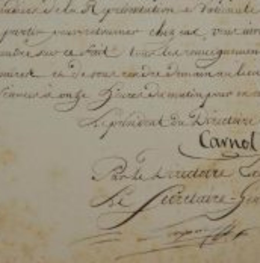 "Le Directoire exécutif, citoyen ministre, à qui l'on vient d'assurer qu'environ cinquante grenadiers de la Représentation Nationale viennent de partir pour retourner chez eux, vous invite à prendre sur ce fait tous les renseignements nécessaires et de vous rendre demain au lieu de ses séances à onze heures du matin pour en conférer".