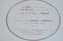 Imprimé en lettres dorées. Cachet gaufré du cabinet du préfet.