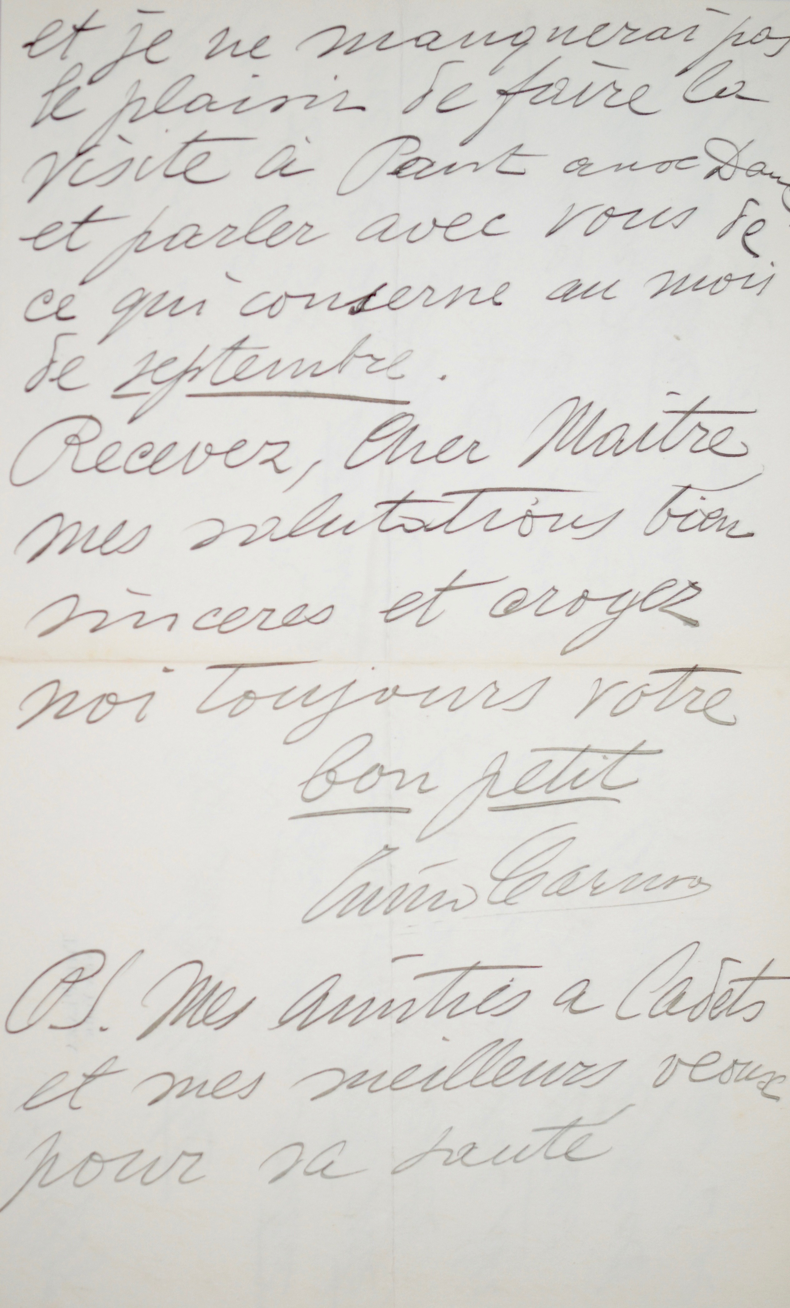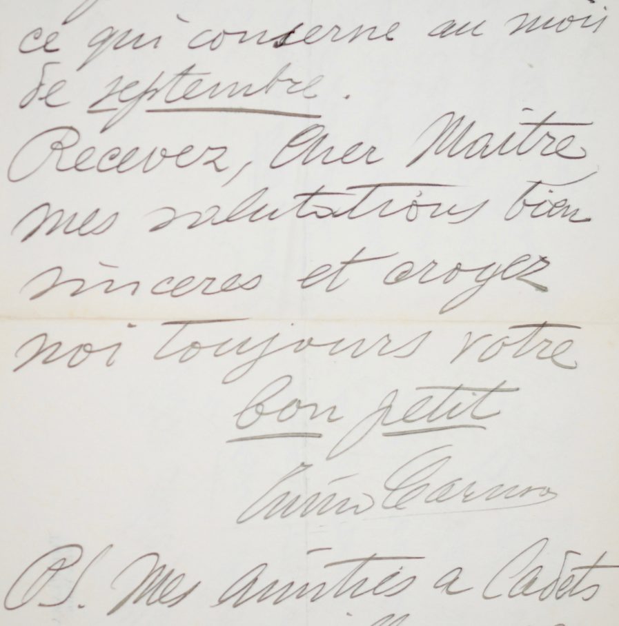 Destinataire : "mon cher maître" [Coquelin aîné (1841/1909), comédien]
