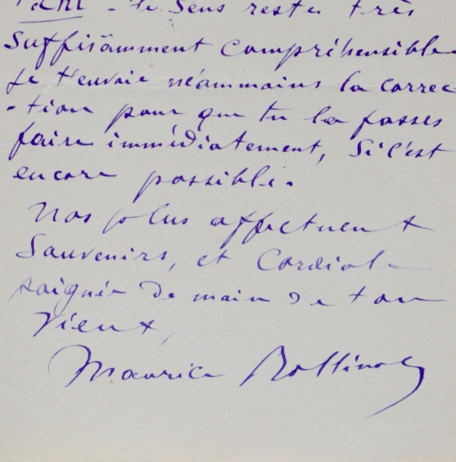 - 2 lettres autographes signées de Maurice Rollinat, adressées à Émile Goubert ("Mon vieux"). 4 pp. in-8. Fresselines, novembre-décembre 1897. « Je te donne pleine autorisation de reproduire mon masque de Béthune en tête du livre, dessus ou dessous, avant ou après, à ton choix. Tu feras mettre l’inscription suivante : « A mon bien cher ami / le docteur Emile Goubert / En témoignage [...]. Entends toi donc avec Mélandri pour une petite fugue à Fresselines, que vous seriez gentil de venir réveillonner avec nous ! Grâce à toi je ne vais pas trop mal et je peux m’en aller bravement à la pêche [...] ». Puis une semaine plus tard : « S’il n’est pas déjà trop tard, voici une correction qui, du reste, n’est pas absolument nécessaire pour l’intelligibilité de la phrase : environ vers la 95ème ligne avant la n de « Ce que dit la Mort », on avait mis sur tes épreuves comme aussi sur le Gil Blas : [...]. Ce tout ne signi ant rien, je l’ai rayé. Ce qu’il faudrait, je m’en suis souvenu, ma lettre une fois partie, c’est : [...]. Tu vois que sans cet adverbe tant, le sens reste très suf samment compréhensible. Je t’envoie néanmoins la correction [...] ».