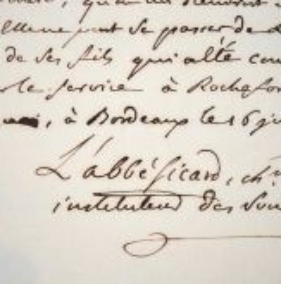 Certificat de l’abbé Sicard, directeur de l’école de sourds-muets de Bordeaux.