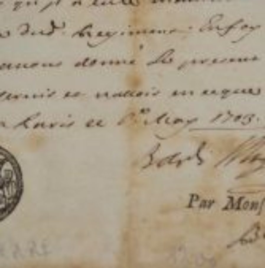 Certificat délivré et signé par Magalotti, premier gouverneur militaire de Valenciennes : "le sieur Raynaldy cappitaine et lieutenant de la compagnie colonelle du régiment royal italien, nous a rendu bon et fidelle compte de tout ce qui a pu regarder nos intérests pendant le temps qu'il a eu le maniement de la quaisse dudit régiment [...]".