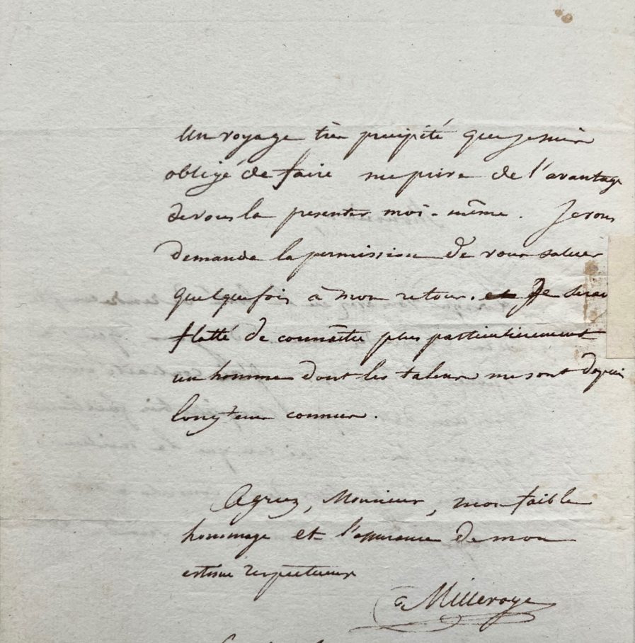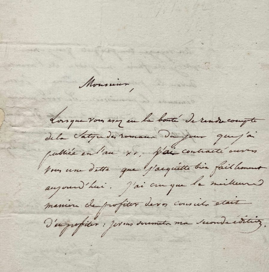 Dans cette lettre à l'académicien Jean-Louis Laya, Charles-Hubert Millevoye, poète abbevillois mort à 33 ans, évoque la publication de la seconde édition de sa « satyre des romans du jour » [Danger des romans, 1804].