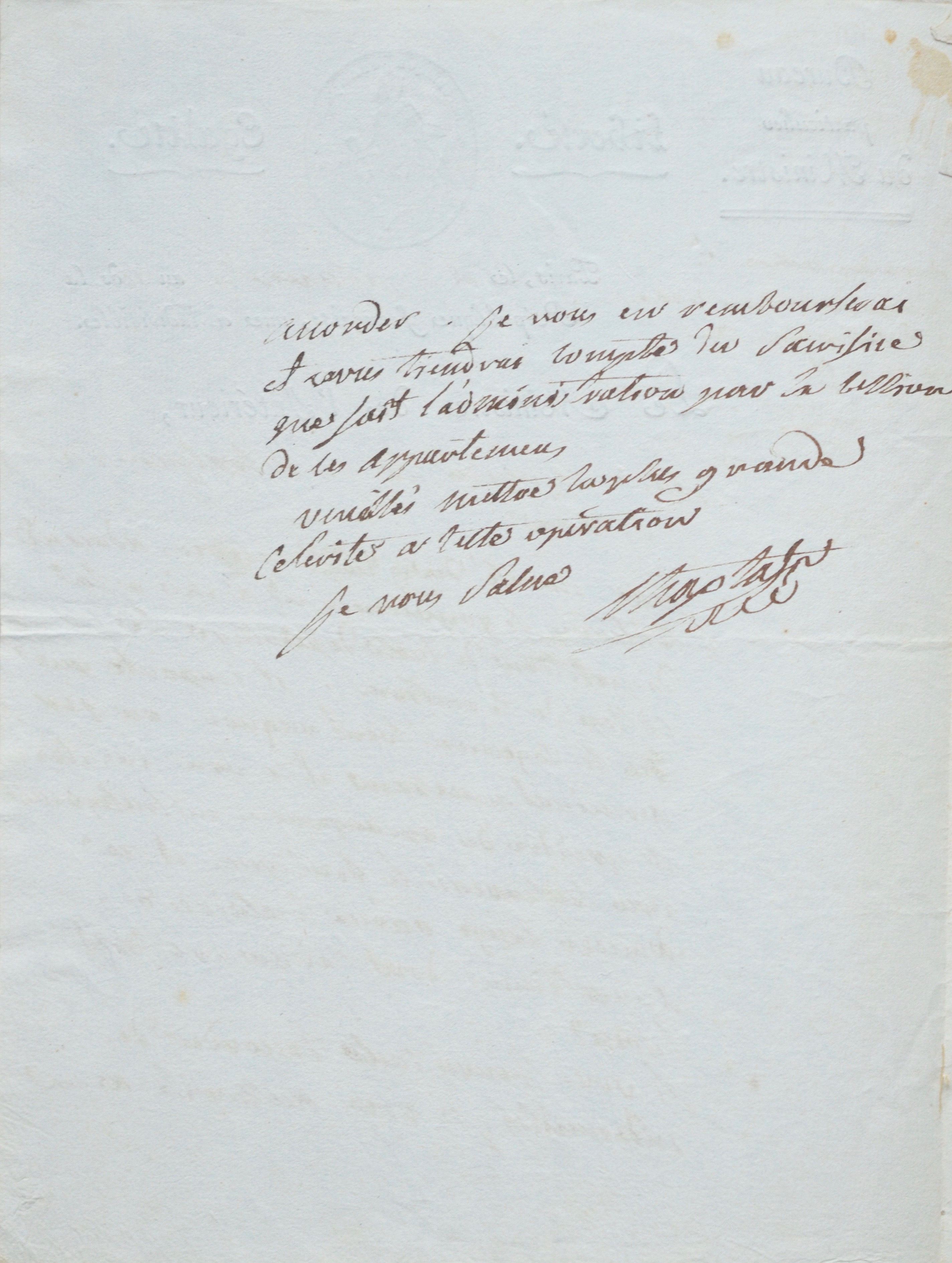 Apostille signée Reboul "déposée aux archives du prytanée français par délibération de l'administration du 3 ventes an 10".