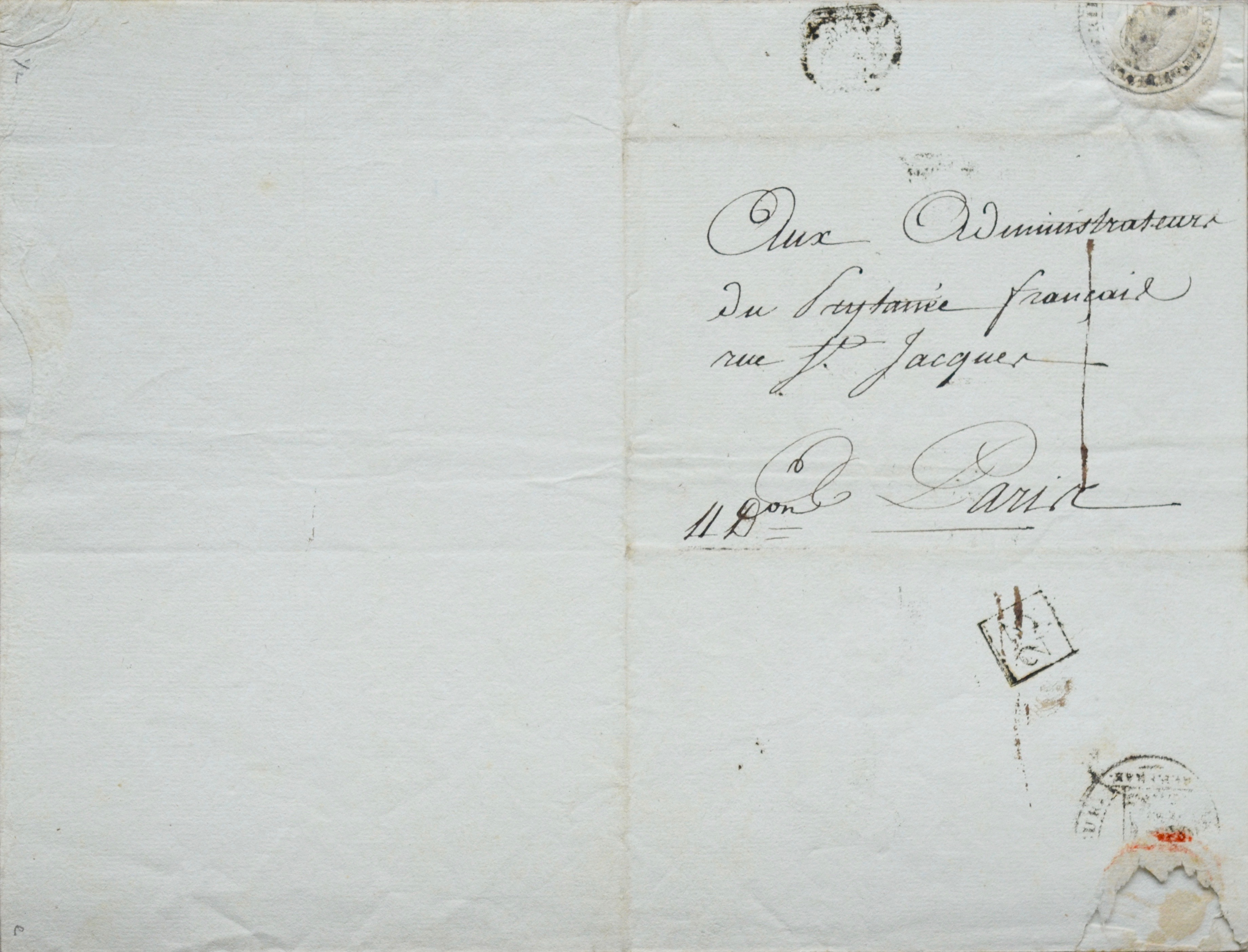 Etat : Petites pliures et tache angulaire. Petit manque de papier pas bris du cachet.