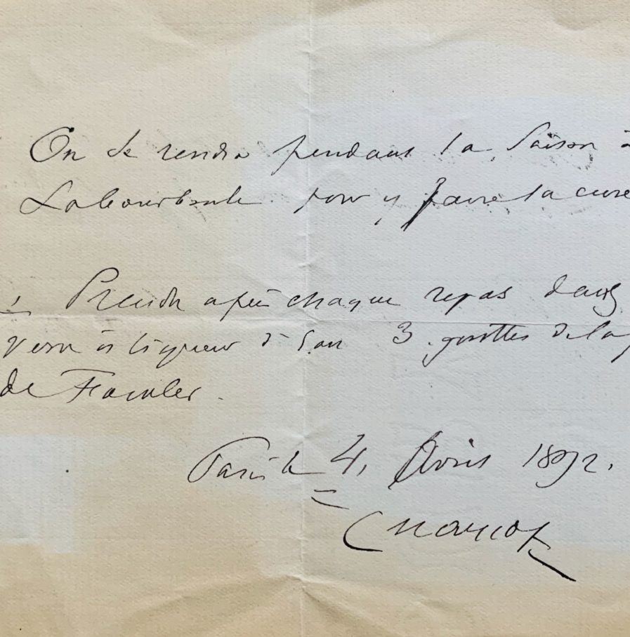 Ordonnance médicale du docteur Jean-Martin Charcot :