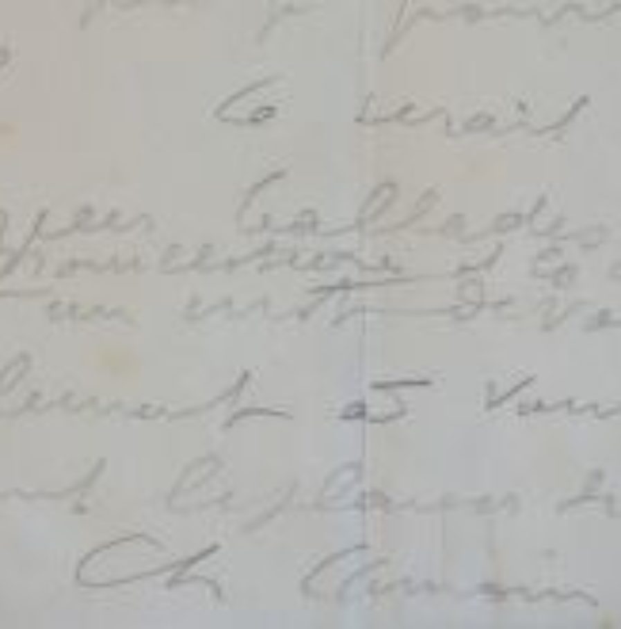 Charles Camoin (Marseille, 1879/1965)Camoin, ne pouvant partir voir Mouillot avant le 15 mai, lui demande quelques précisions sur son affaire. "Je vous écris en attendant le modèle, pendant que la pluie tambourine sur les vitres de ce petit atelier où j'étouffe depuis six mois je crois. Pourtant je devrais être à St Tropez pour le règlement final de la propriété, le 1er mai, mais je suis encore retenu par une affaire et par quelques toiles en train. En attendant la petit citron à 2 ou 3 places indispensable au paysagiste. Je pense pouvoir me procurer cet été une simple moto. Croyez-vous que je pourrais trouver cela à St Tropez? Ce serait chic pour faire quelques ballades ensemble [...]".