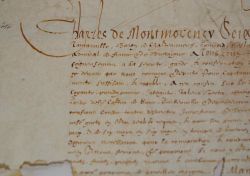 Brevet de capitaine garde des côtes de la Saâne, Quiberville et ses dépendances [environs de Dieppe], accordé par l'amiral de France, Charles de Montmorency-Damville, à Aymar de Manneville (1552/1617), capitaine de 50 hommes d'armes, qui fut bailli et gouverneur de Gisors. Il l'invite à user de la force en cas de nécessité en particulier pour lutter "contre toutes descentes, incursions d'ennemys ou de pyrates [...]".