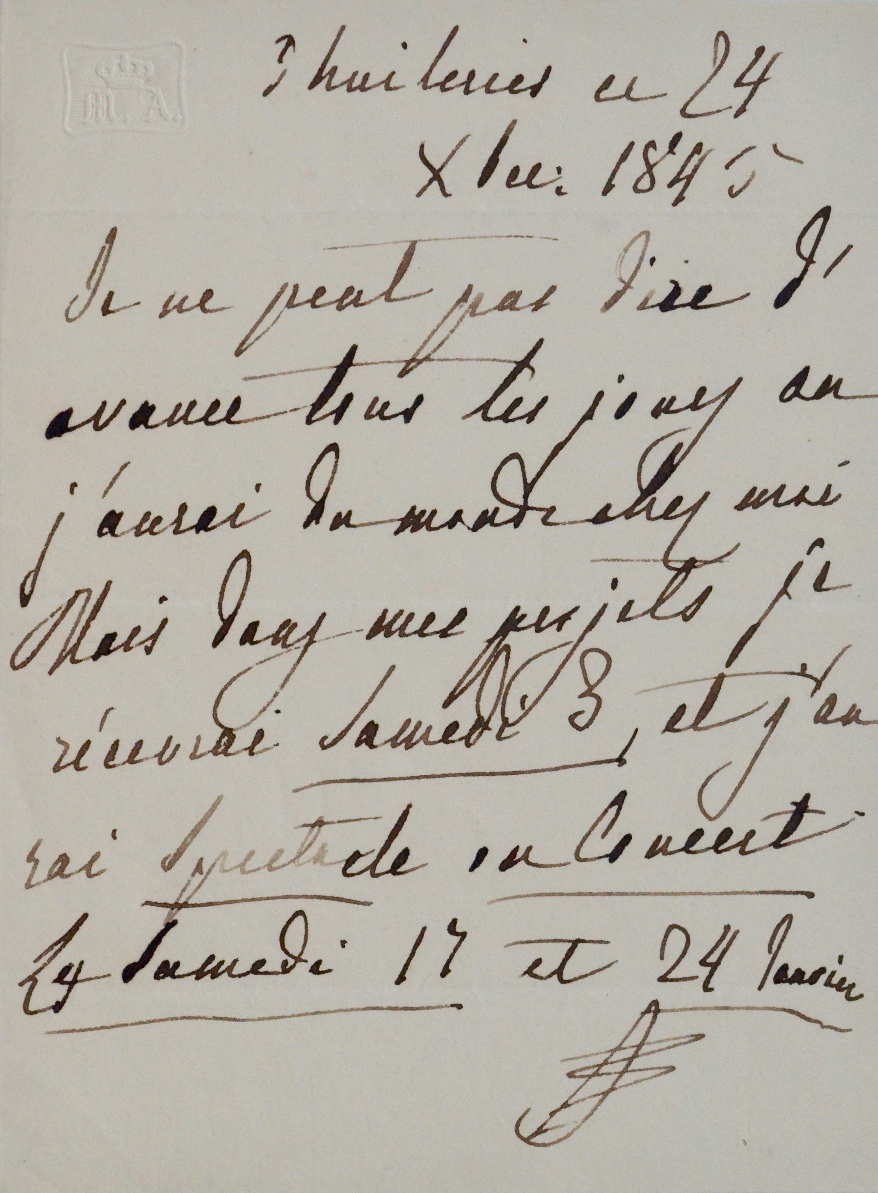 Charmant billet de la reine Marie-Amélie