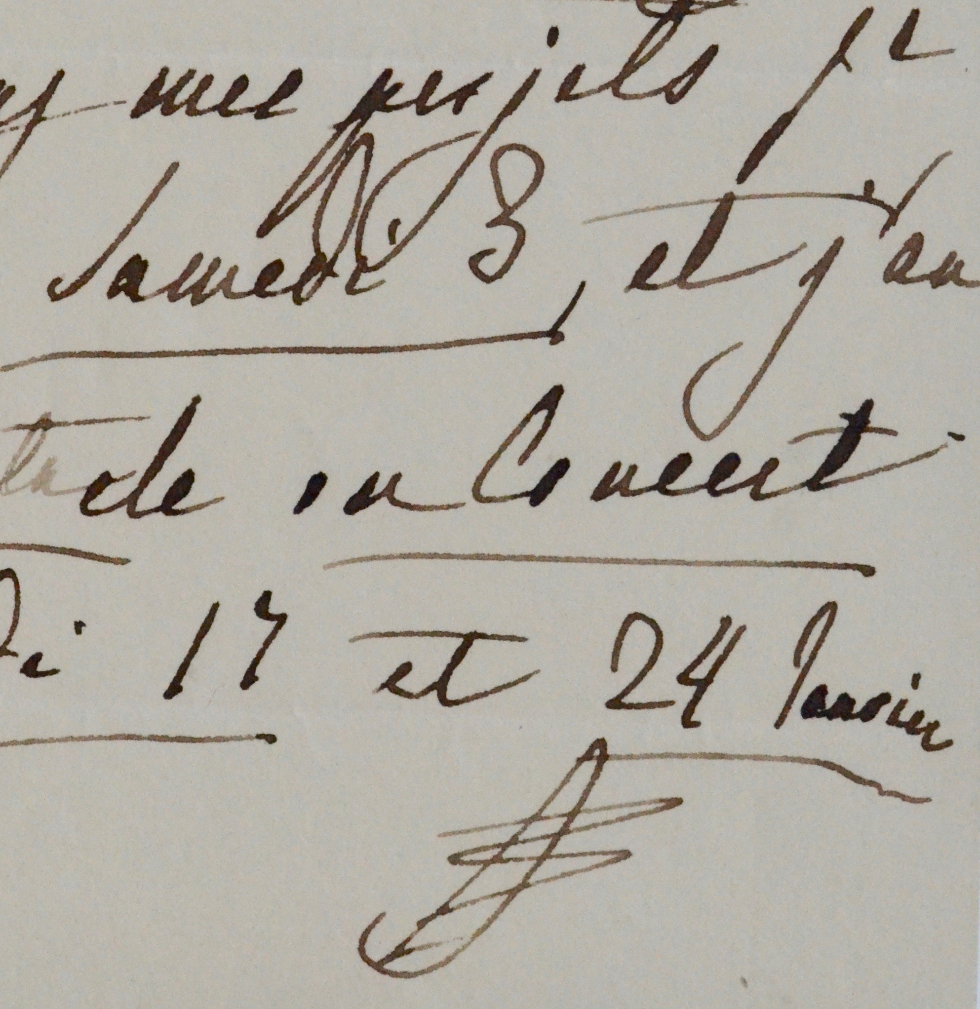 Marie-Amélie ne sait pas exactement quand elle recevra. "Je ne peux pas dire d'avance tous les jours où j'aurai du monde chez moi. Mais dans mes projets je recevrai samedi 3, et j'aurai spectacle ou concert les samedis 17 et 24 janvier".