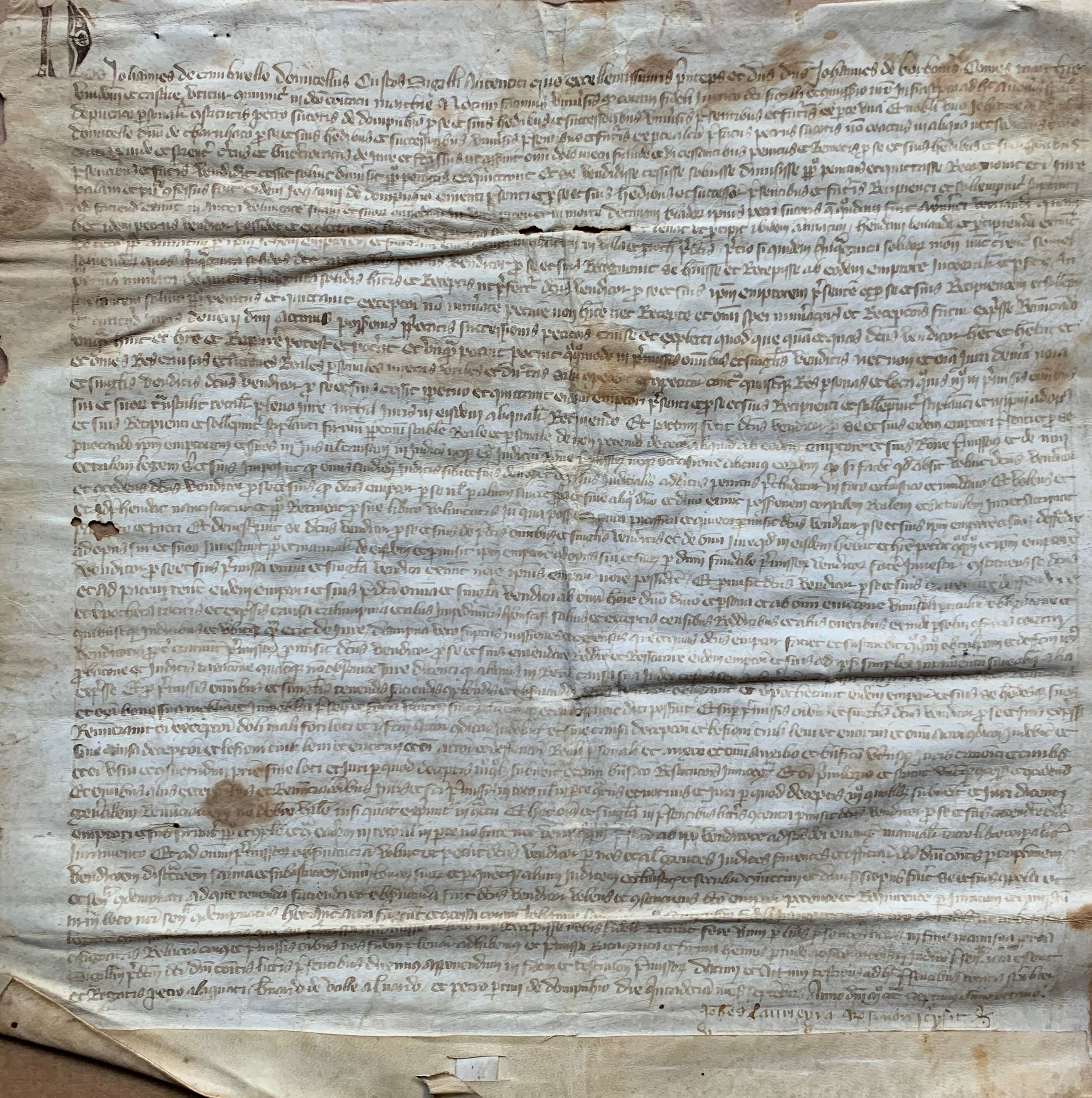 Cette pièce est citée dans l'ouvrage de référence : Le comté de la Marche et le Parlement de Poitiers (A. Thomas) à l'appui de la thèse incluant la seigneurie de Dognon (de Domphonio dans le texte latin) dans le comté de la Marche appartenant à Jean de Bourbon. Mais la Bibliothèque Nationale ne possède qu'une copie papier du XVIe siècle de cet acte (franç. 27309 dossier 18537, fol 3-4). Ici nous avons une expédition en parchemin contemporaine de l'acte, d'autant plus importante que la copie est fautive sur les noms de lieu.